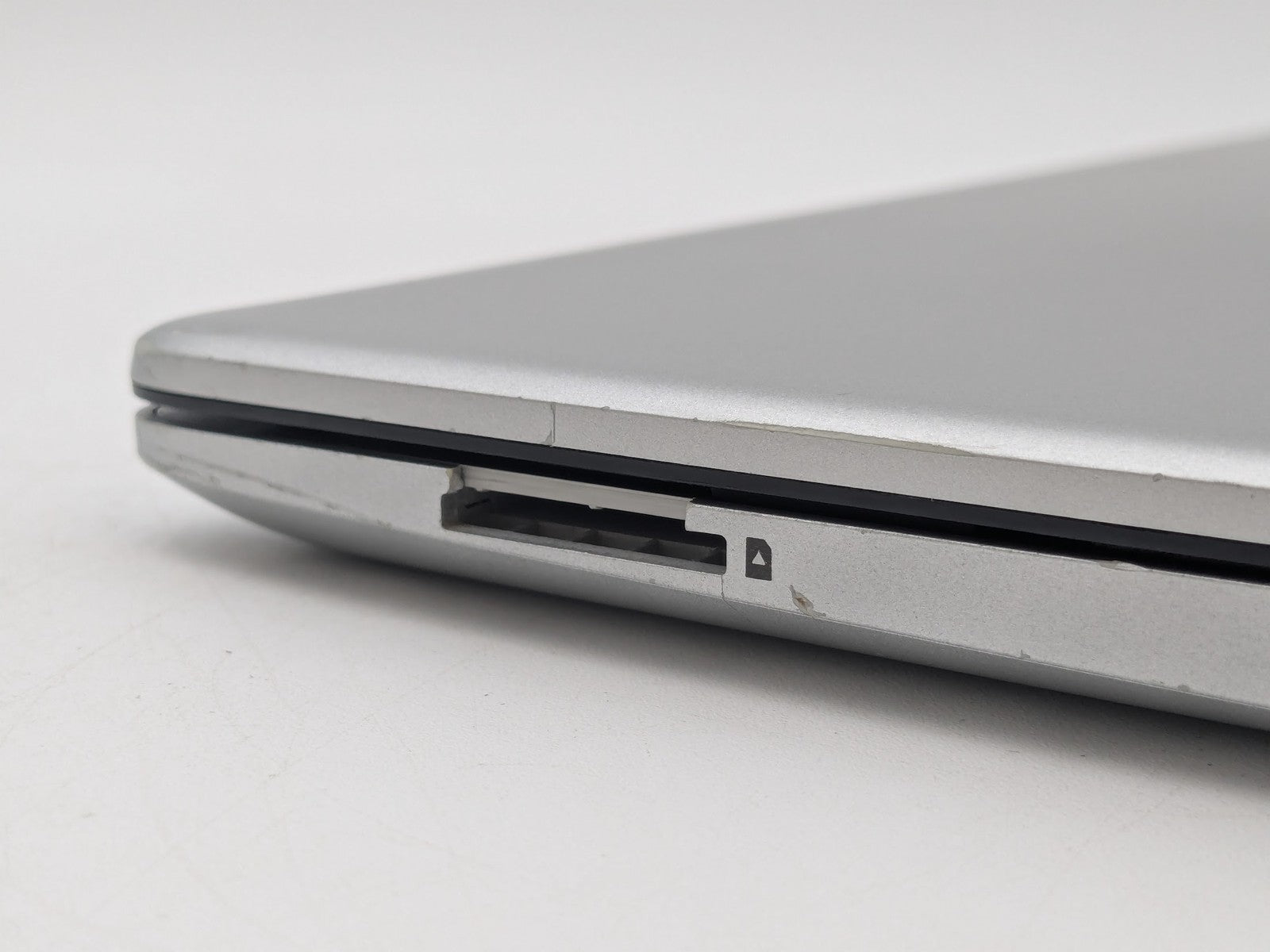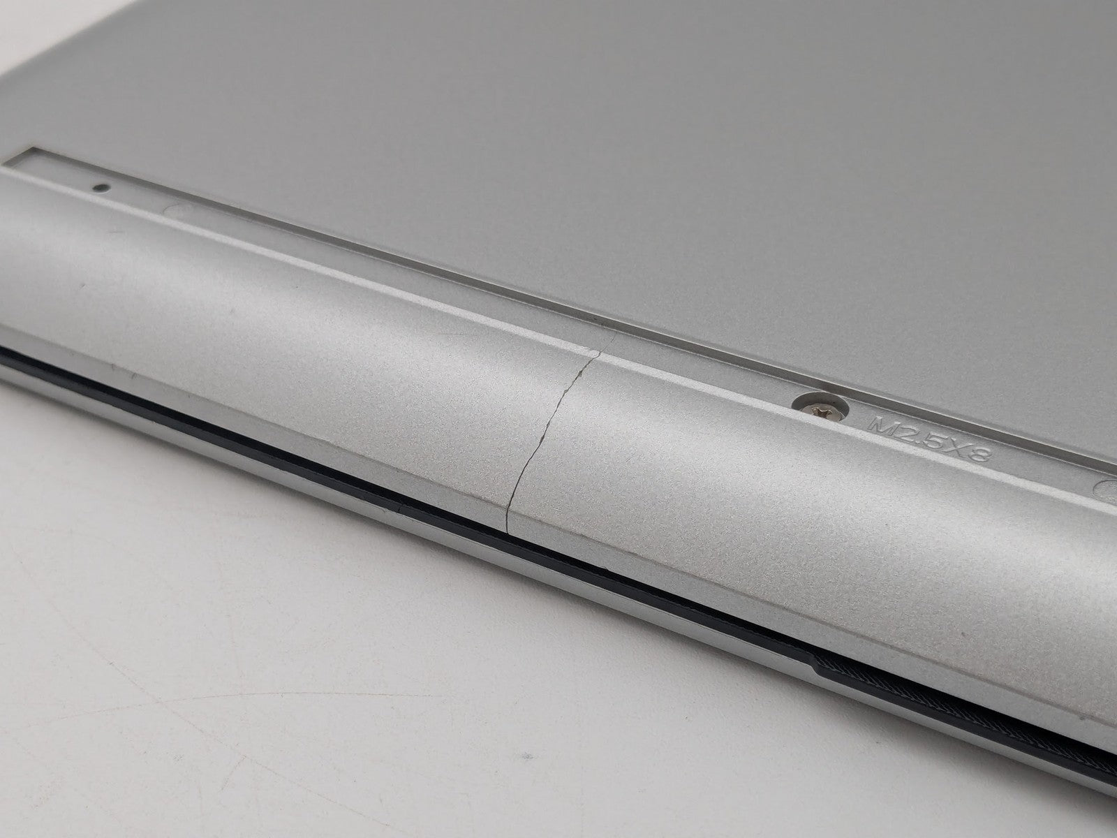 Cosmetic Defects: Interior: Several very small white spot blemishes on display. Display has keyboard imprinting. Exterior: Dents and scratches on top and bottom. Piece missing in bottom left frame where ethernet port is. Scratches and dents all along the sides. Large cracks in bottom. SD card slot has plastic piece missing.