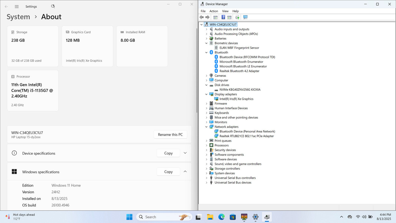 HP Laptop 15-dy2093dx 405F7UA 15" FHD I5-1135G7 256GB SSD 8GB W11 FP Reader