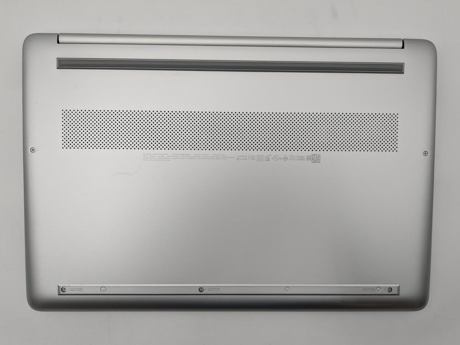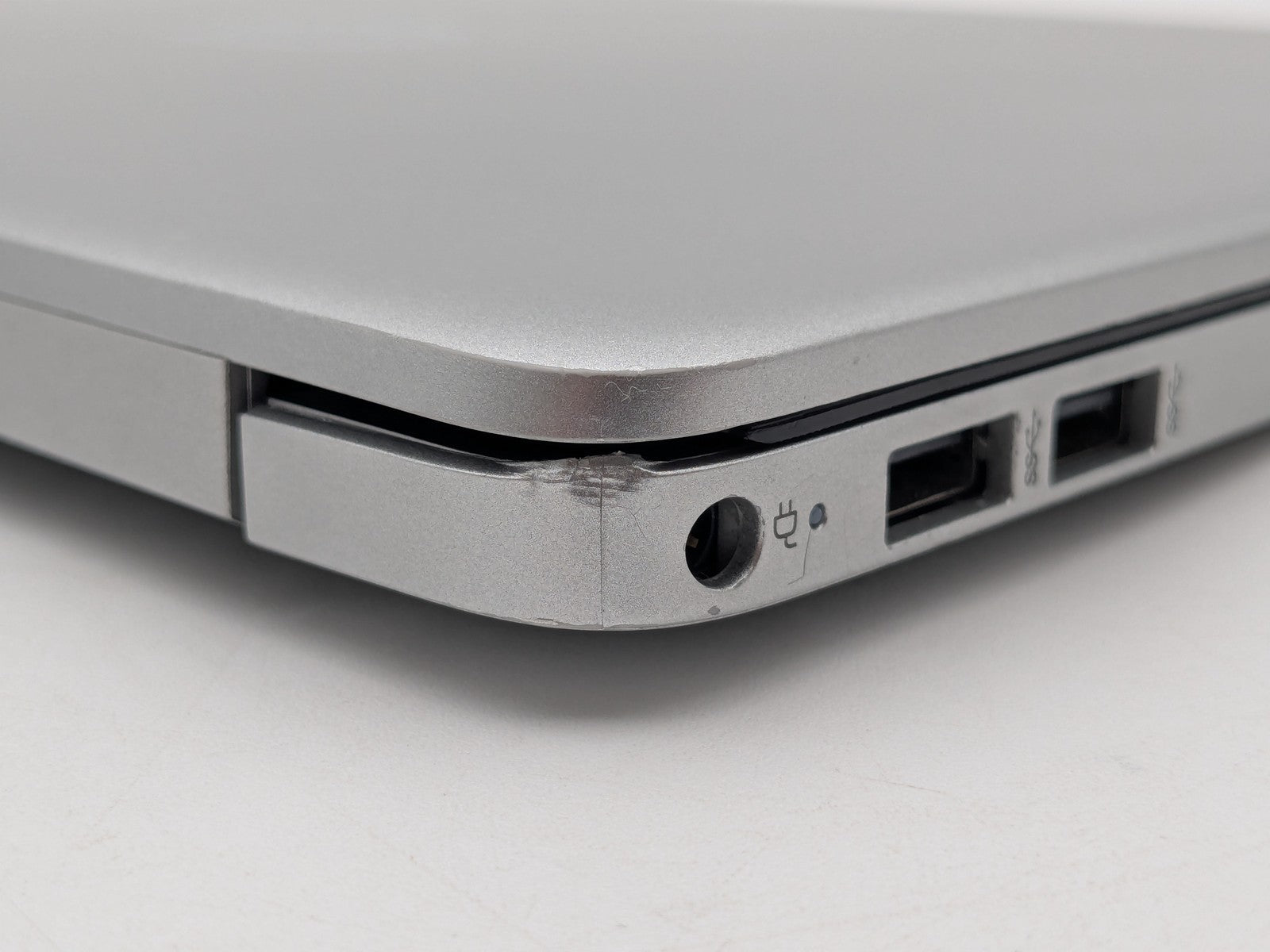 Cosmetic Defects: Interior: Display has visible scratches and keyboard imprinting. Visible wear on bezel, wear and scratches on palm rest and around keyboard, light wear on keyboard and touchpad. Exterior: Visible wear and scratches on lid, scratches on bottom cover, scuffed/scratched along edges of device. Missing bottom rubber foot.