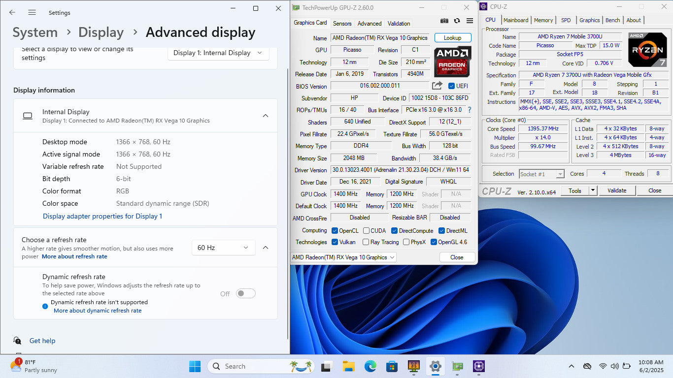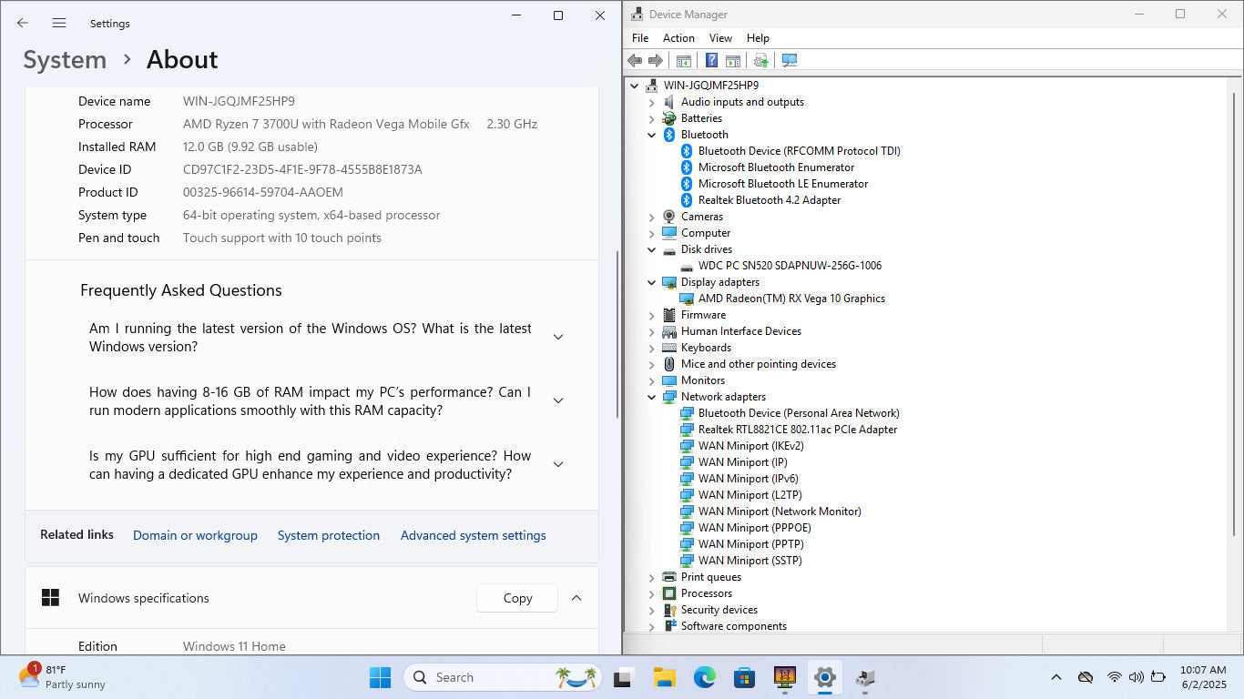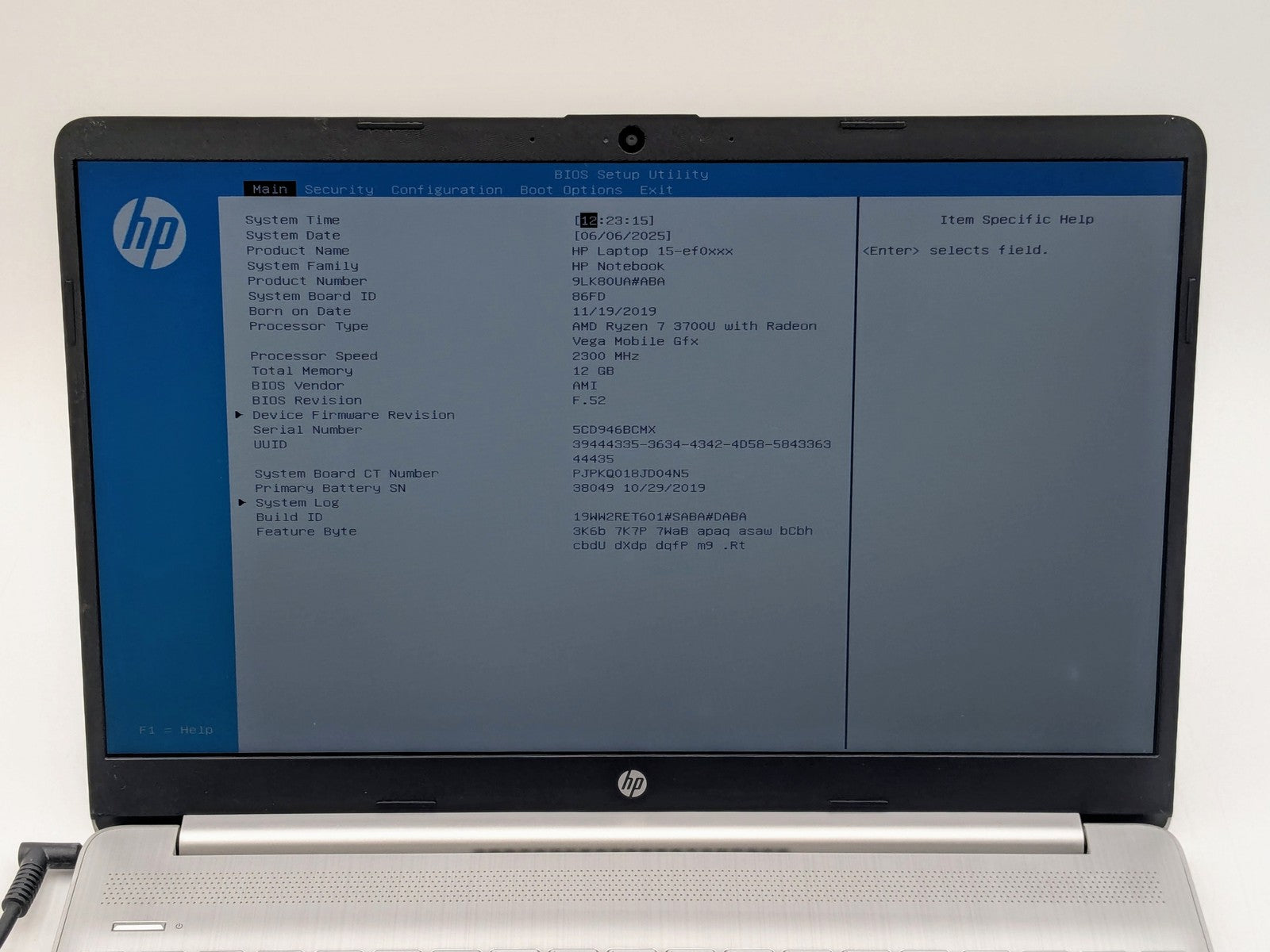 HP Laptop 15-ef0875ms 15" HD Touch RYZEN 7 3700U MOBILE GFX 256GB SSD 12GB W11