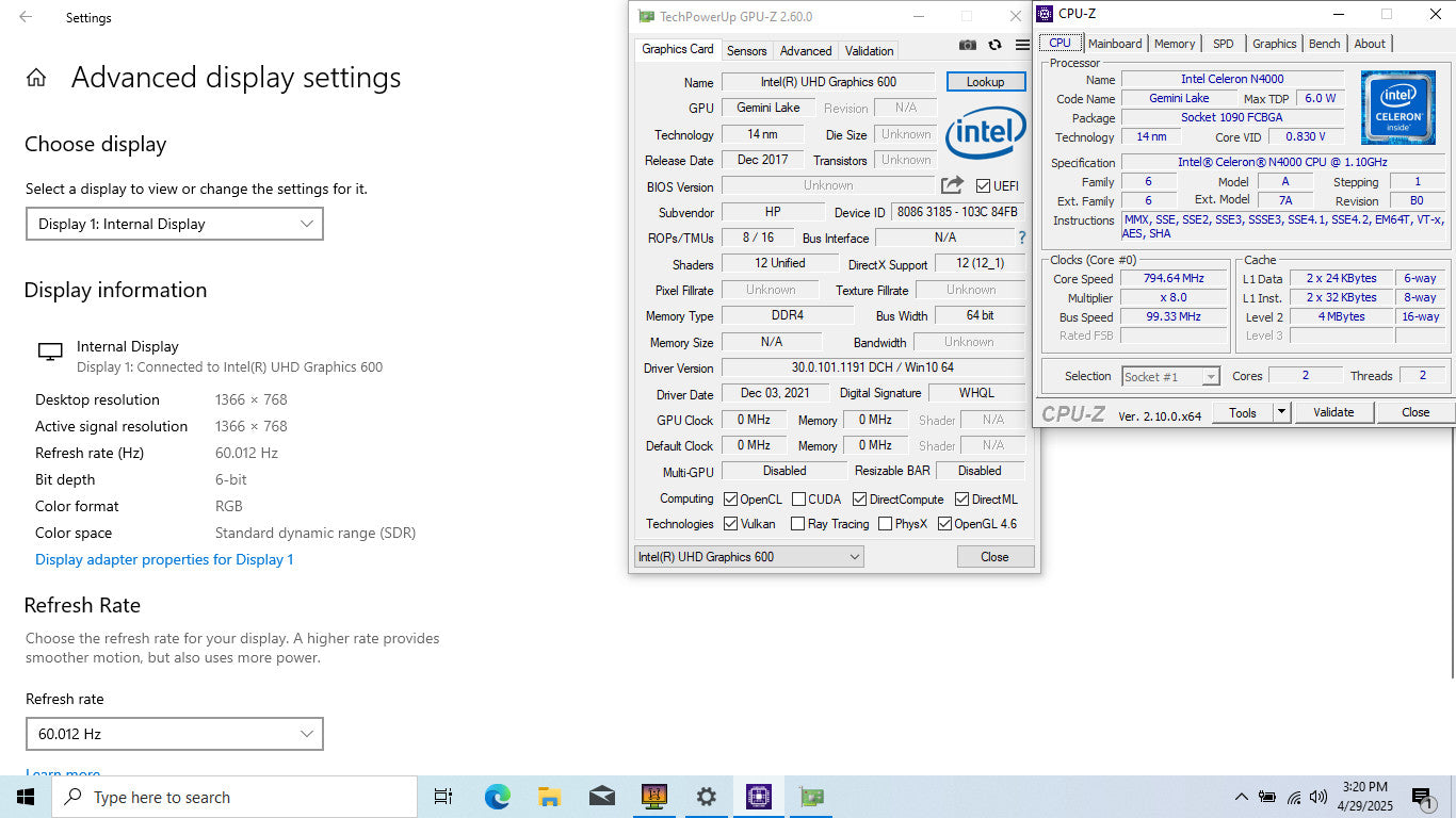 HP LAPTOP STREAM LAPTOP 14 14" HD CELERON N4000 4GB W10 Webcam