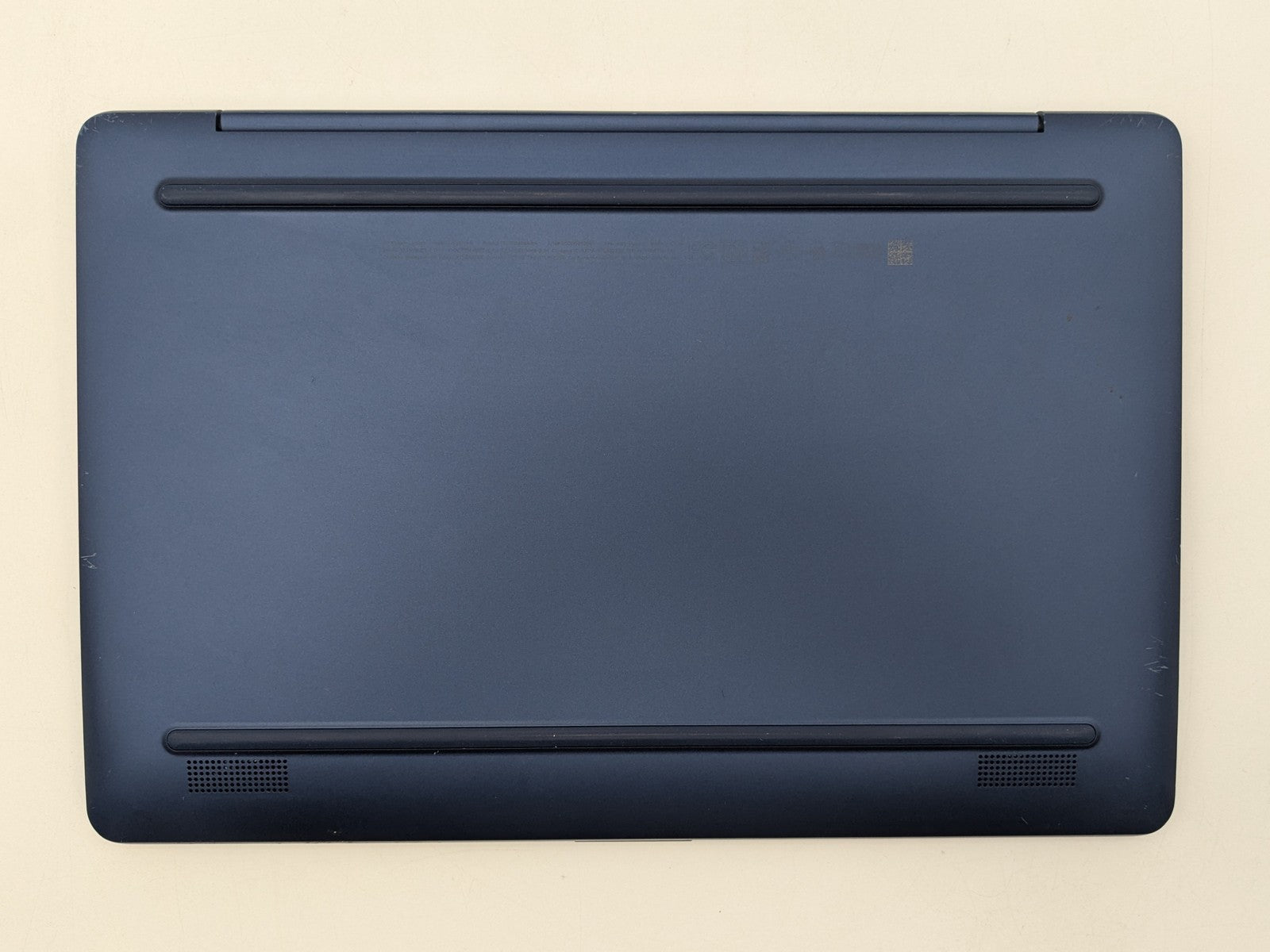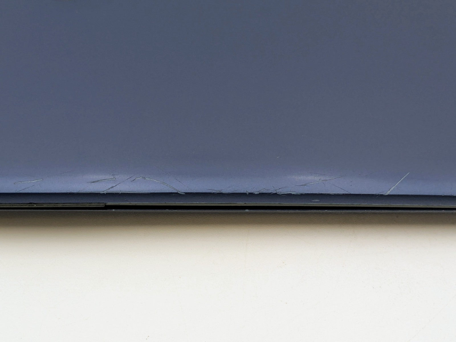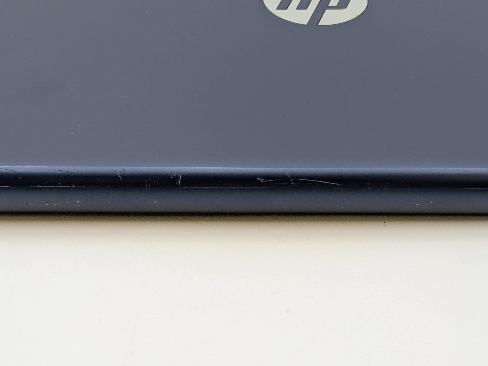 Cosmetic Defects: Interior: Display has visible scratches and white spots. Palm rest has small visible scratches. Exterior: Top cover has heavy wear/scratches. Bottom cover has moderate wear/scratches.
