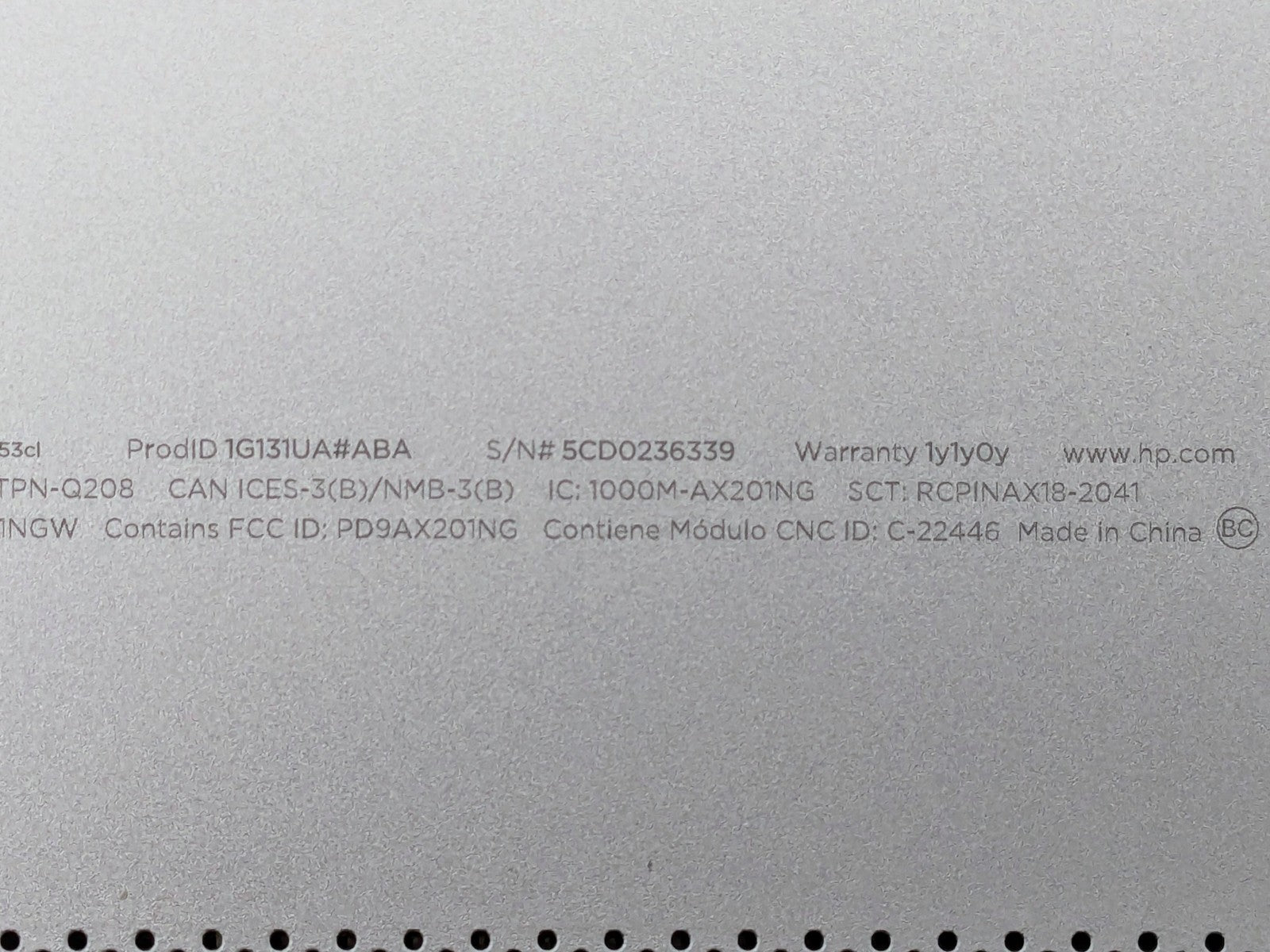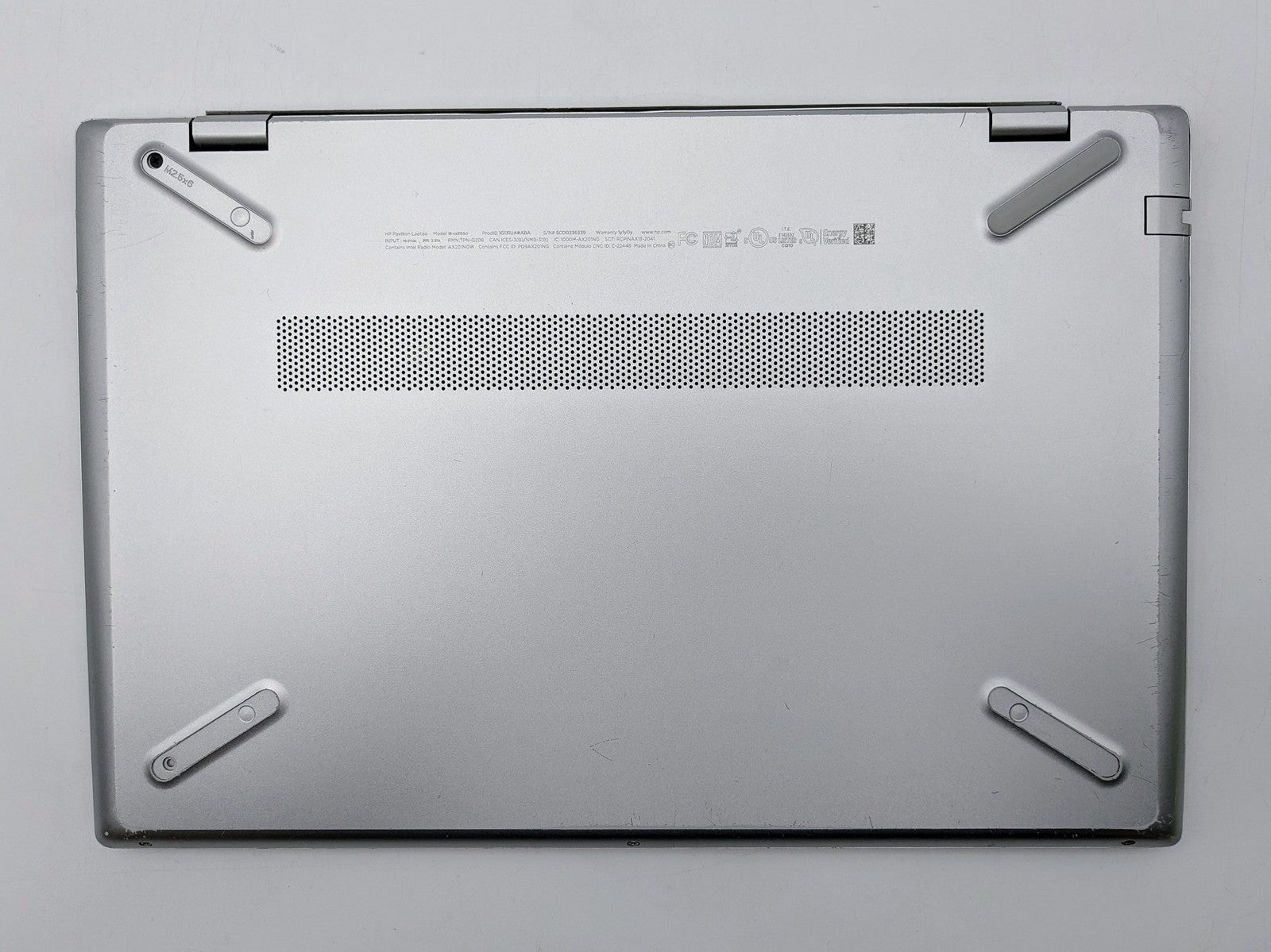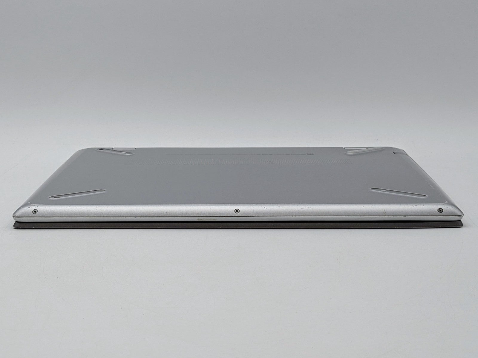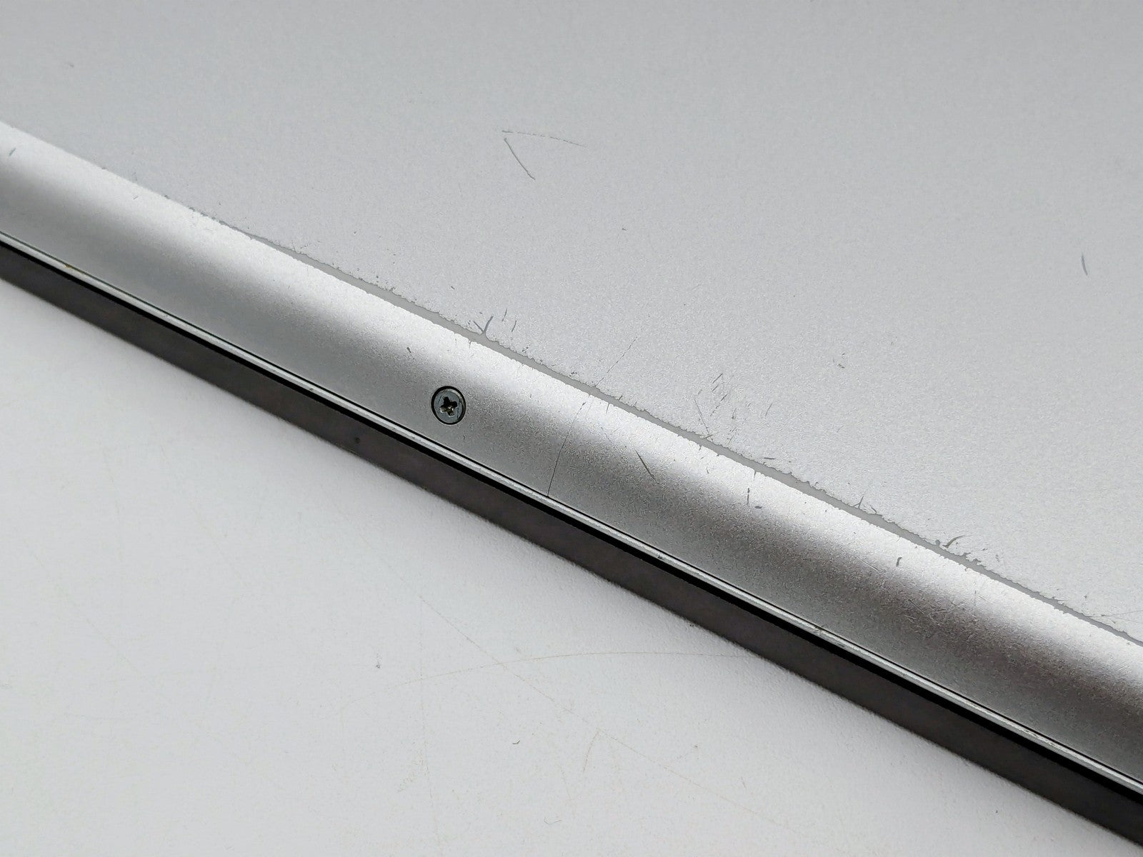 Cosmetic Defects: Interior: Display has visible scratches, keyboard imprinting, and backlight bright spot. Touchpad has heavy wear. Palmrest has chips in coating and visible scuffs. Exterior: Both covers have heavy scratches, scuffs, dents, and missing coating. Crack in hinge cover. Crack in front center. Missing 3/4 rubber feet.