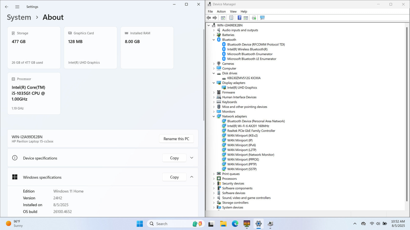 HP Pavilion 15-cs3153cl 15" FHD Touch I5-1035G1 512GB SSD 8GB W11 Webcam *READ*