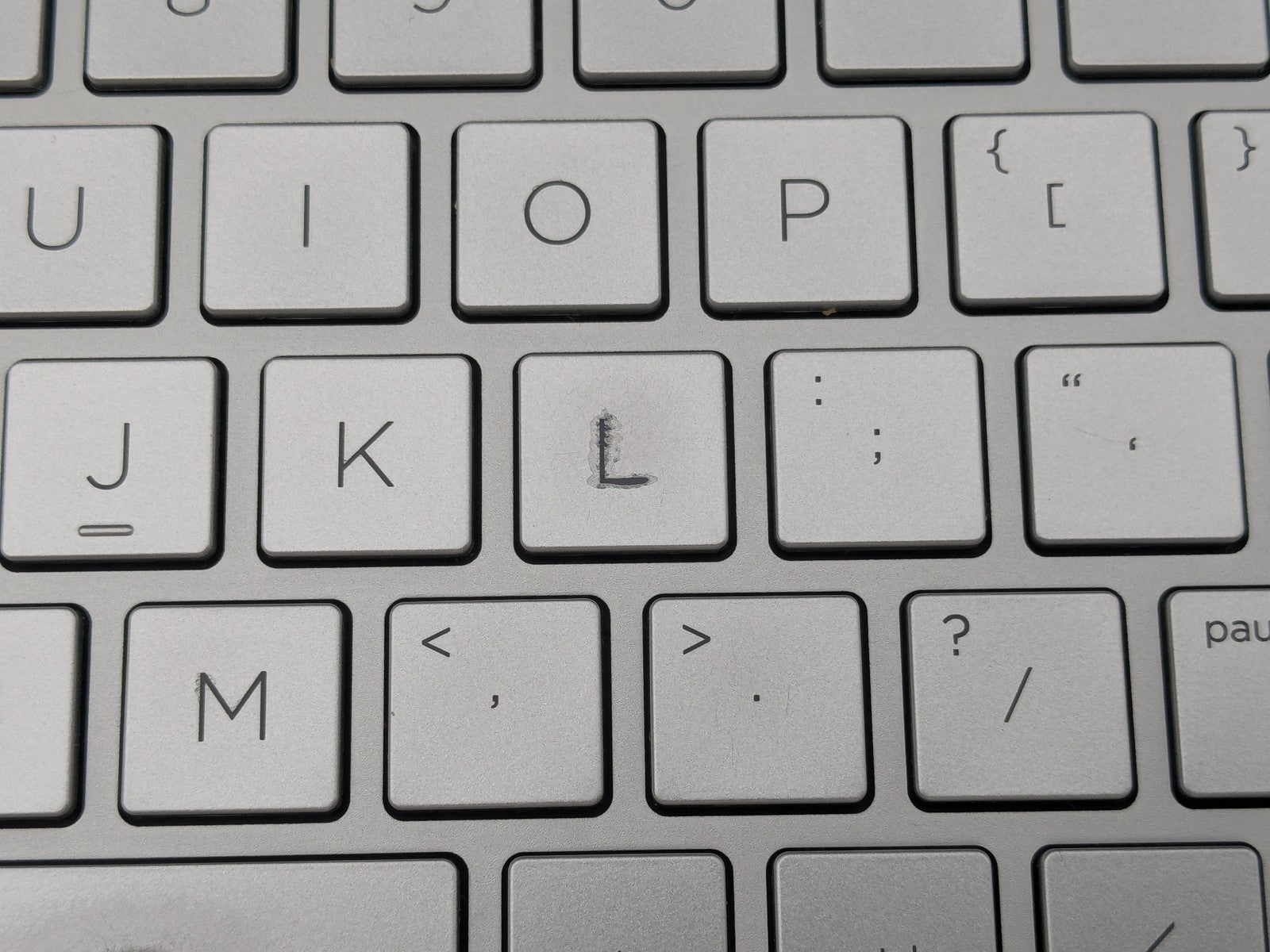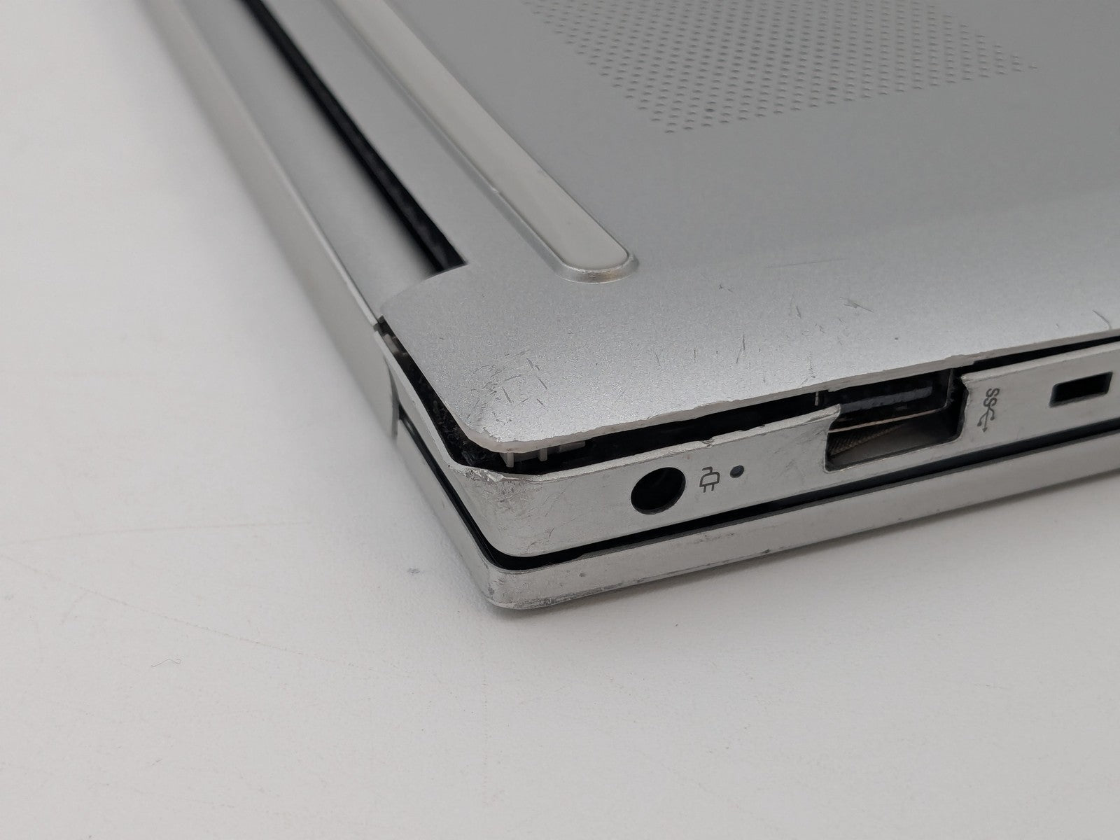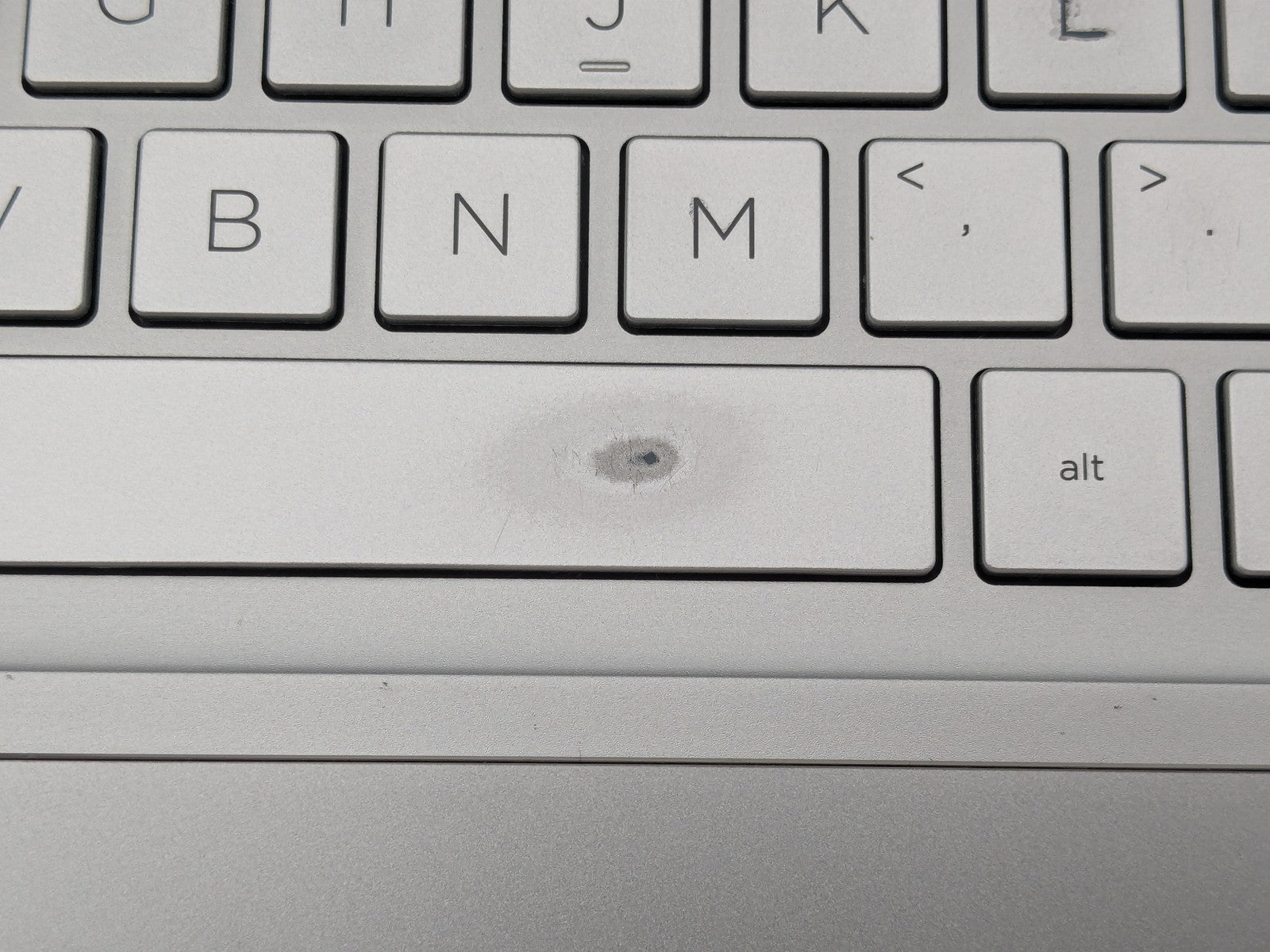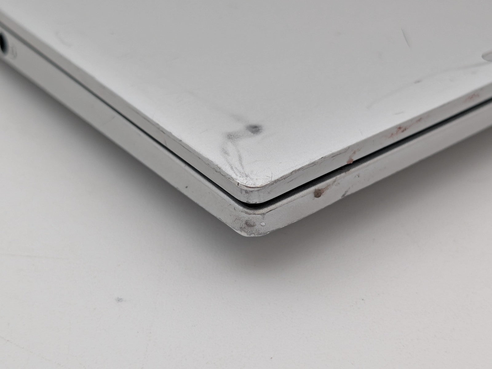 Cosmetic Defects: Interior: Display has visible scratches and keyboard imprinting. Visible wear on keyboard ("L" and Spacebar are heavily worn), light scratches on palm rest and around keyboard. Exterior: Visible wear and scratches on lid. Deep scratches on bottom cover, corners dents, cover does not fully close. Bottom rubber feet lightly damaged.