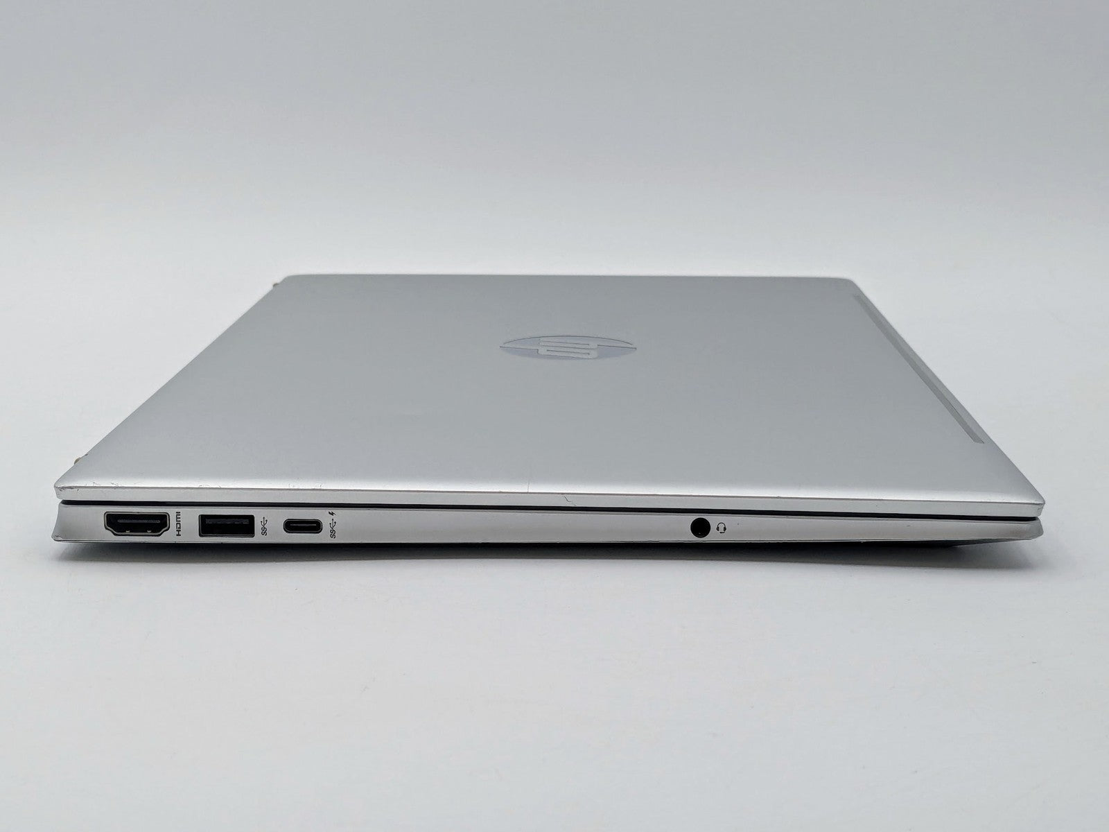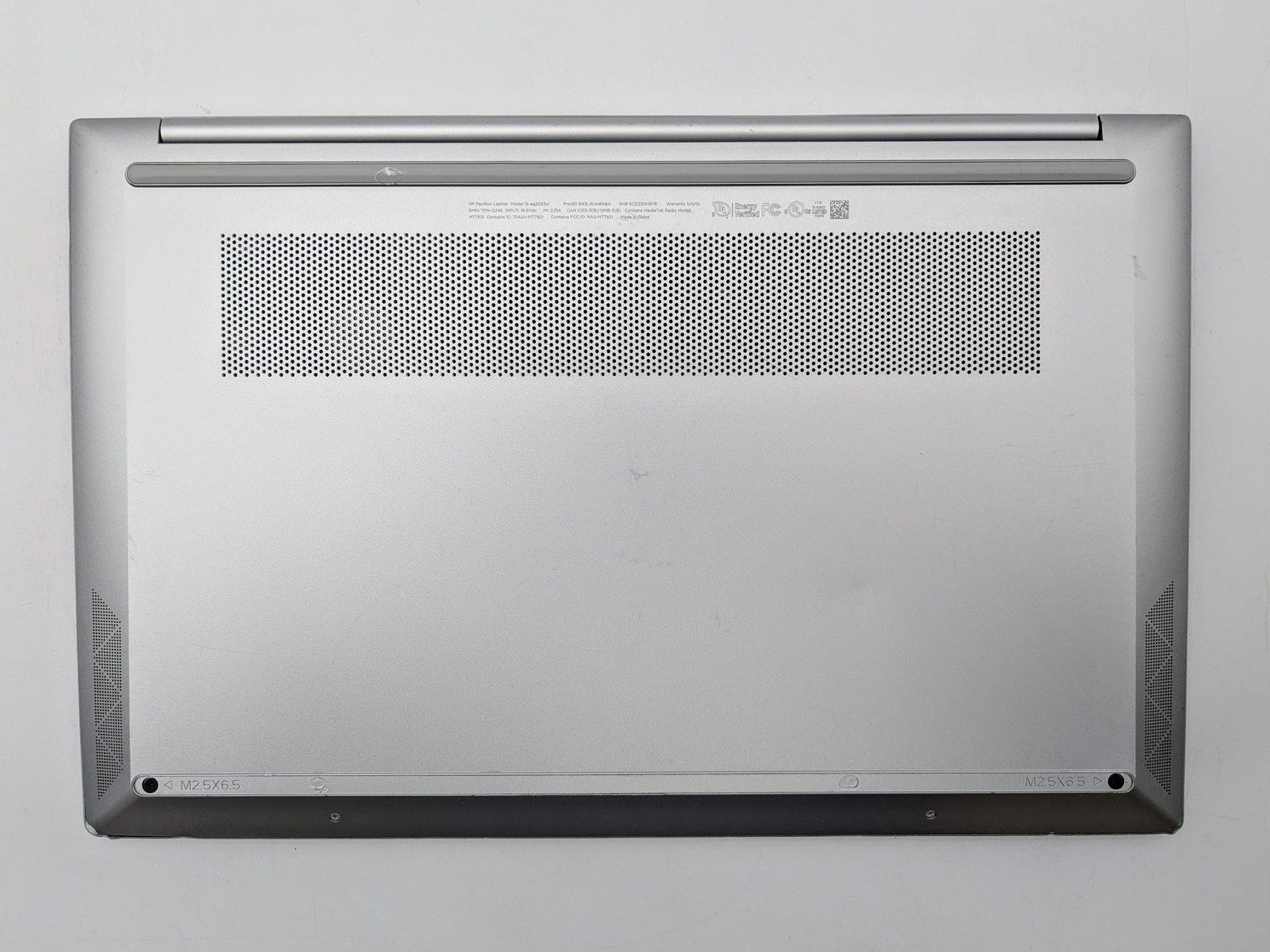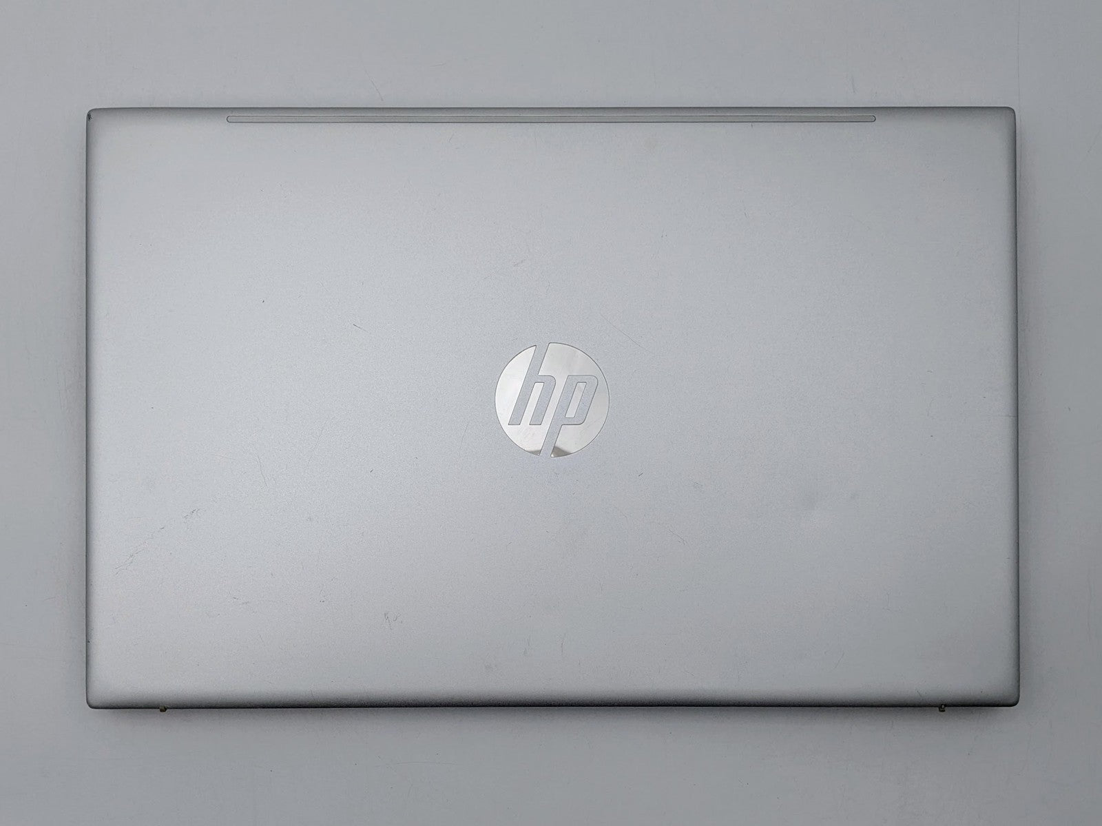 Cosmetic Defects: Interior: Display has visible scratches and keyboard imprinting. Light wear on keyboard and touchpad, visible scuffs/scratches on palm rest, bezel, and around keyboard. Exterior: Visible wear, scratches/scuffs, and dents on lid and bottom cover, scuffed along edges of device. Dented on corners. Missing bottom rubber foot.