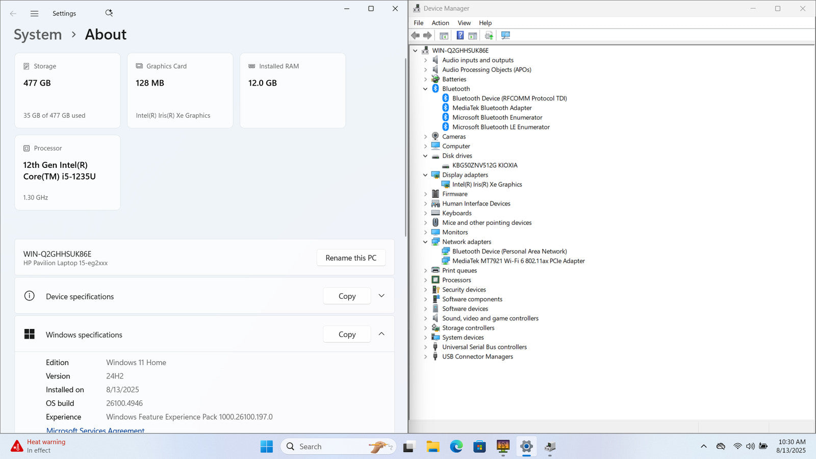 HP Pavilion Laptop 15-eg2053cl 15" FHD Touch I5-1235U 512GB SSD 12GB W11 *READ*