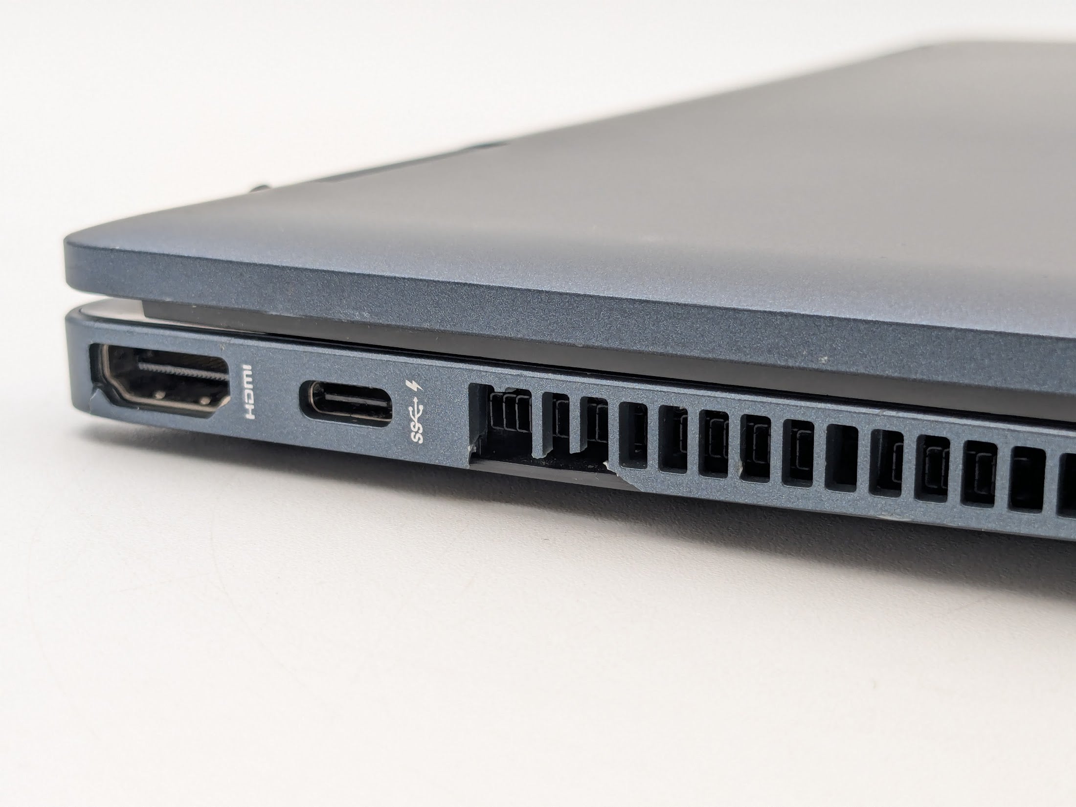 Cosmetic Defects: Interior: Marks on display, semi-visible during normal use. Visible wear on keyboard, touchpad, palm rest, and bezel. Exterior: Visible wear and scratches on lid and bottom cover. Cracked on side vent, wear and scratches around edges of device. Hinges scuffed and slightly loose.
