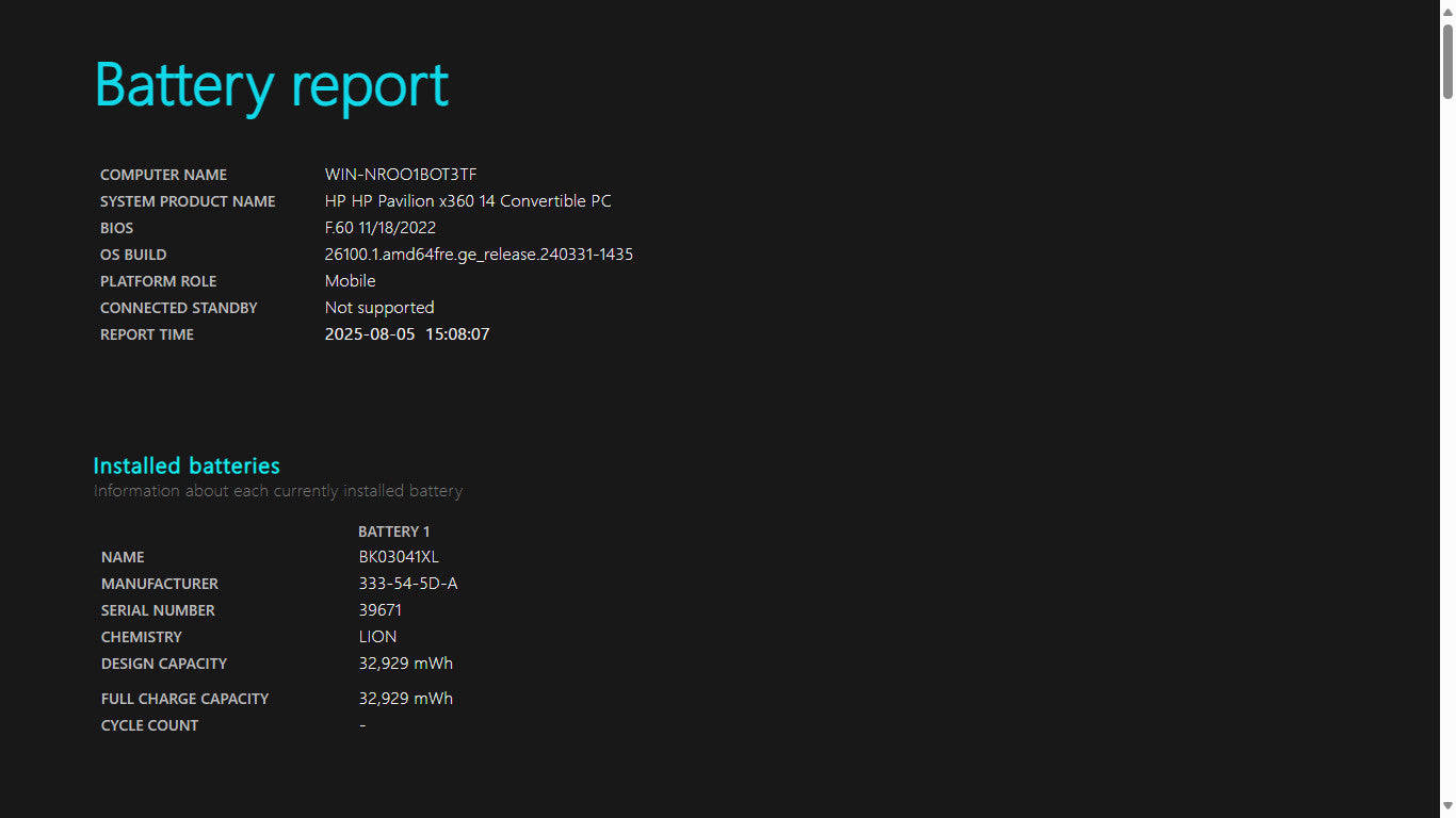 Battery Condition: 32,929/32,929 mWh 100.00%
