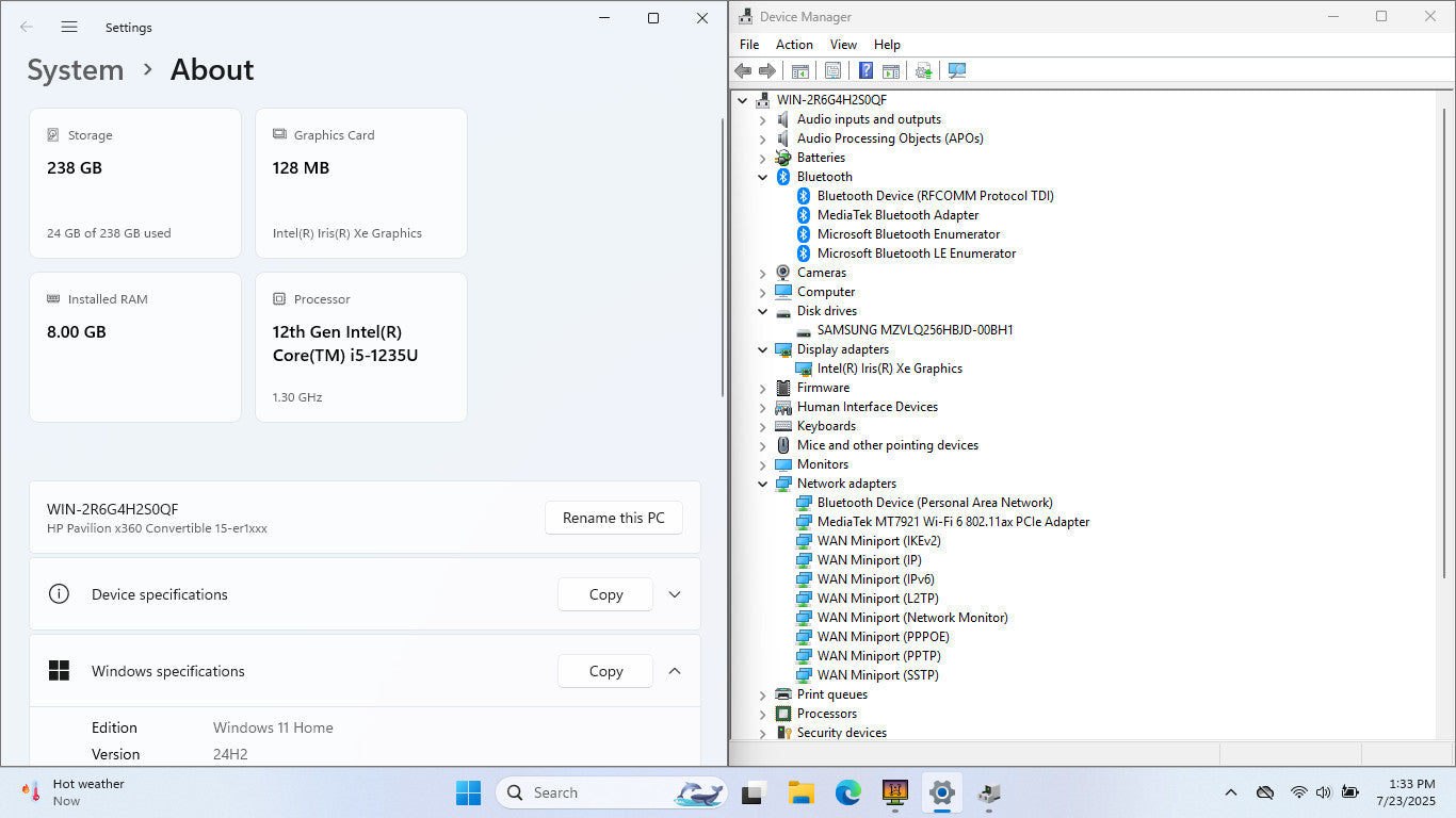 HP Pavilion x360 15-er1025od 2-in-1 15" HD Touch I5-1235U 256GB SSD 8GB W11
