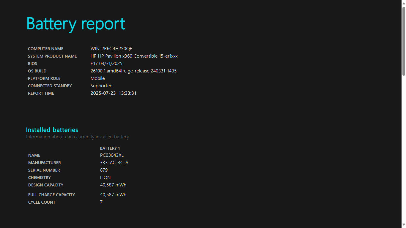 Battery Condition: 40,587/40,587 mWh 100.00%