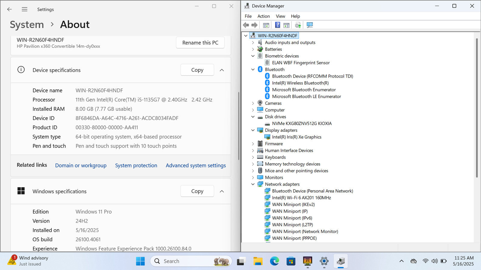 HP PAVILION X360 CONVERTIBLE 14M 14" FHD I5-1135G7 512GB SSD 8GB W11P *READ*