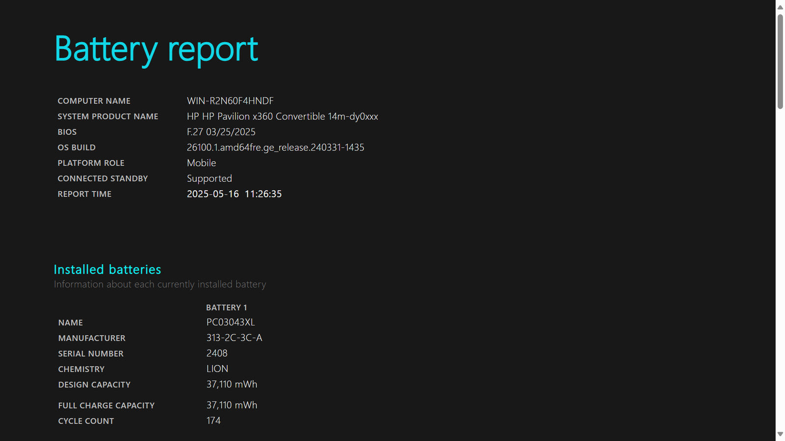 Battery Condition: 37,110/37,110 mWh 100.00%