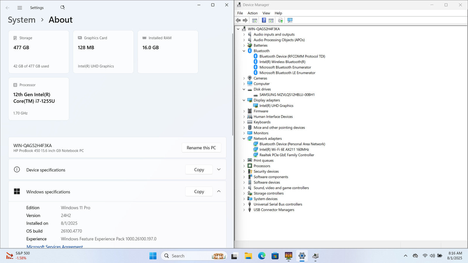 HP ProBook 450 G9 (6A290EA) 15" FHD I7-1255U 512GB SSD 16GB W11P Webcam