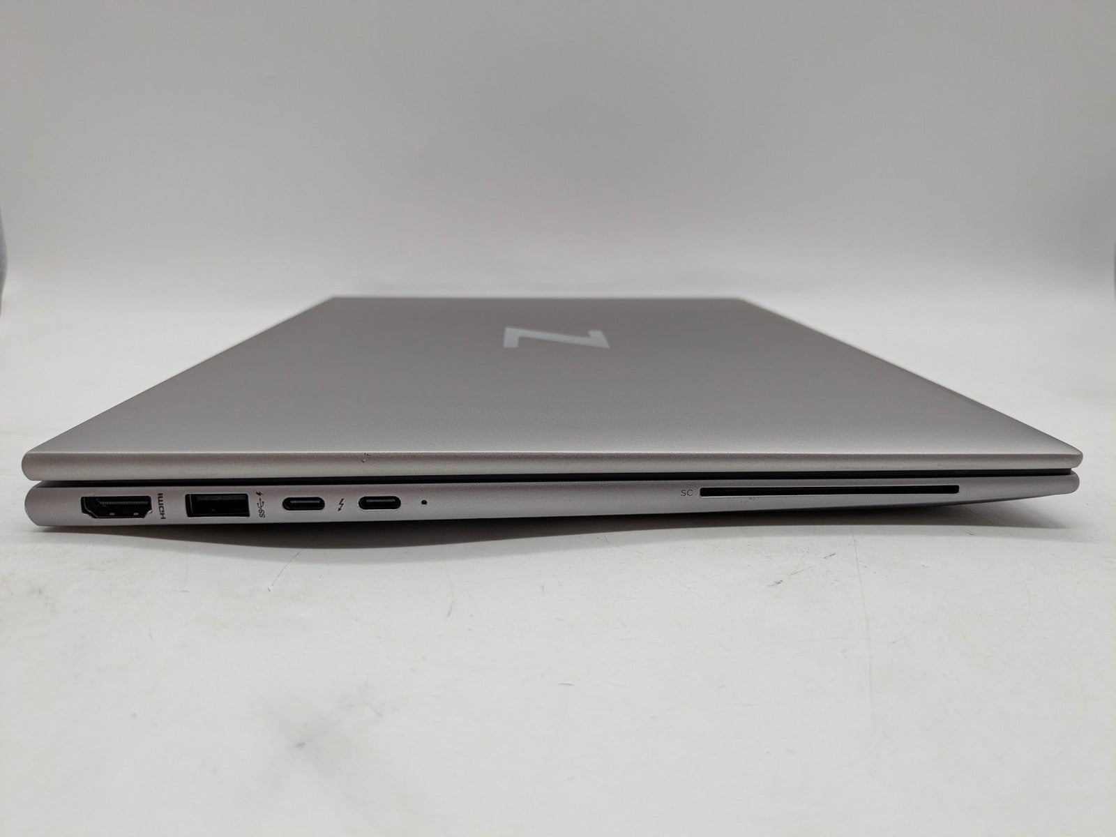 Cosmetic Defects: Interior: Display has visible scratches and keyboard imprinting. Moderate wear on keyboard, light wear on bezel and palm rest. Exterior: Light wear on lid and bottom cover, visible scratches inside "Z" logo. Wear and scratches along edges of device.