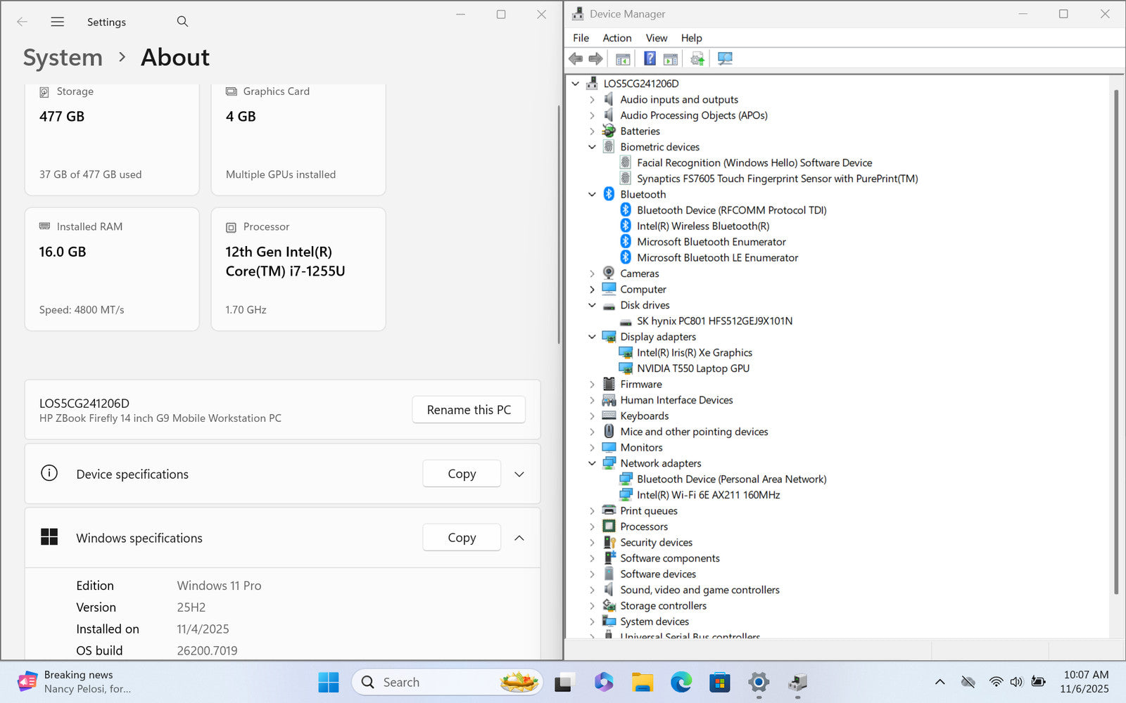 HP ZBook Firefly G9 14" FHD+ I7-1255U 512GB SSD 16GB W11P T550 Webcam Backlit