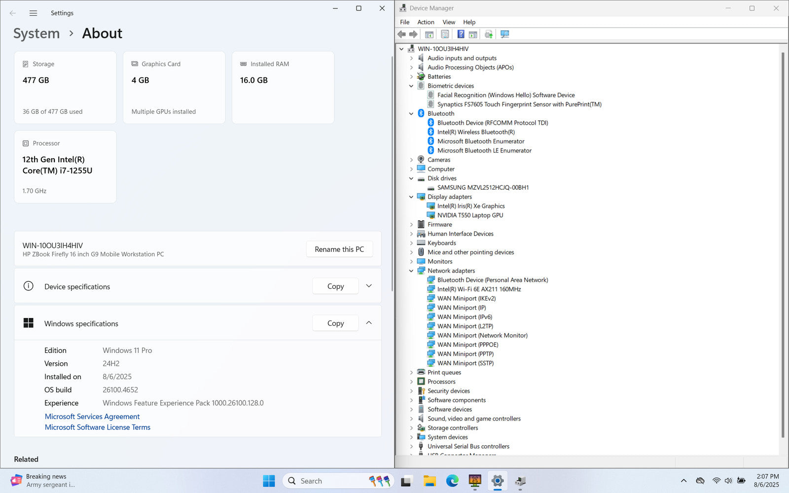 HP ZBook Firefly G9 16" FHD+ I7-1255U 512GB SSD 16GB W11P T550 Webcam Backlit