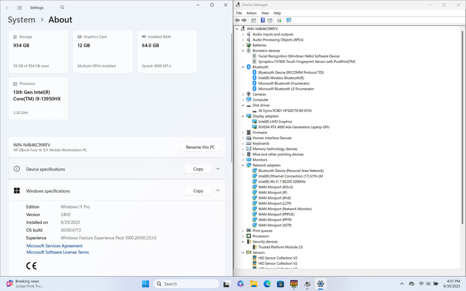 HP ZBook Fury 16 G11 16" FHD+ 13TH I9-13950HX 1TB SSD 64GB W11P RTX 4000 Ada