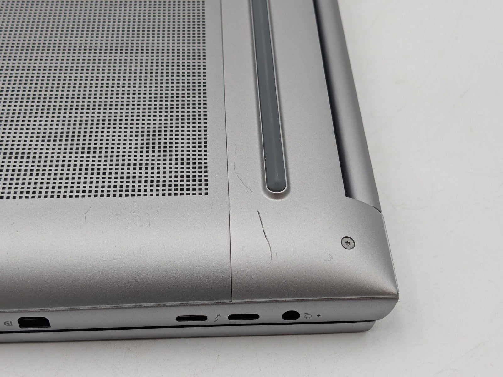 Cosmetic Defects: Exterior: Minor dent on top cover, scratches on top and bottom covers, minor wear near USB-C ports.