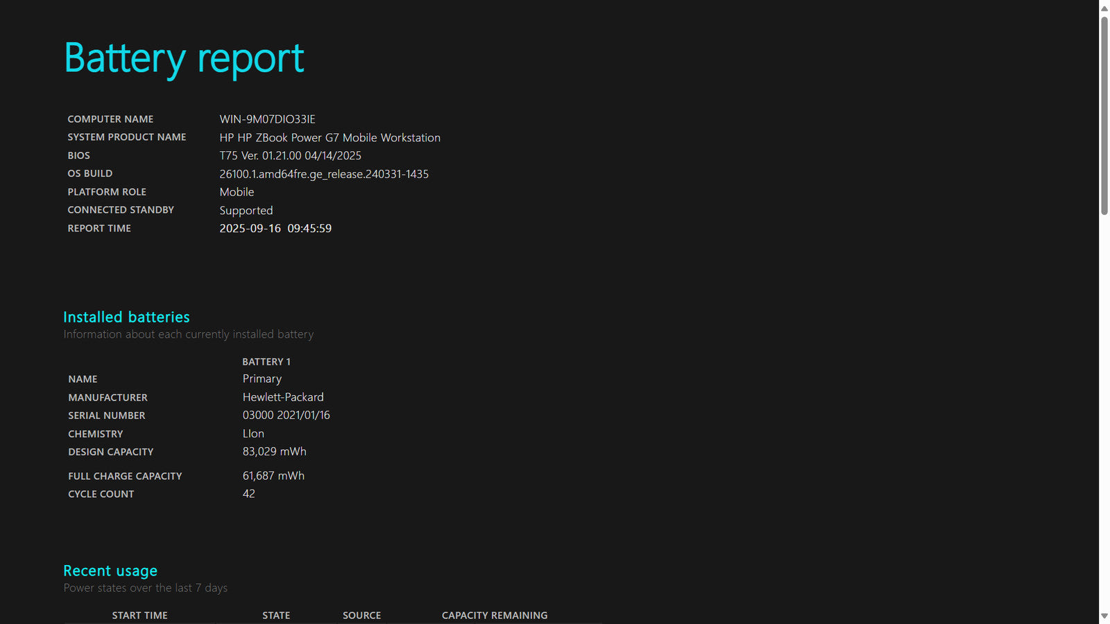 Battery Condition: 61,687/83,029 mWh 74.30%