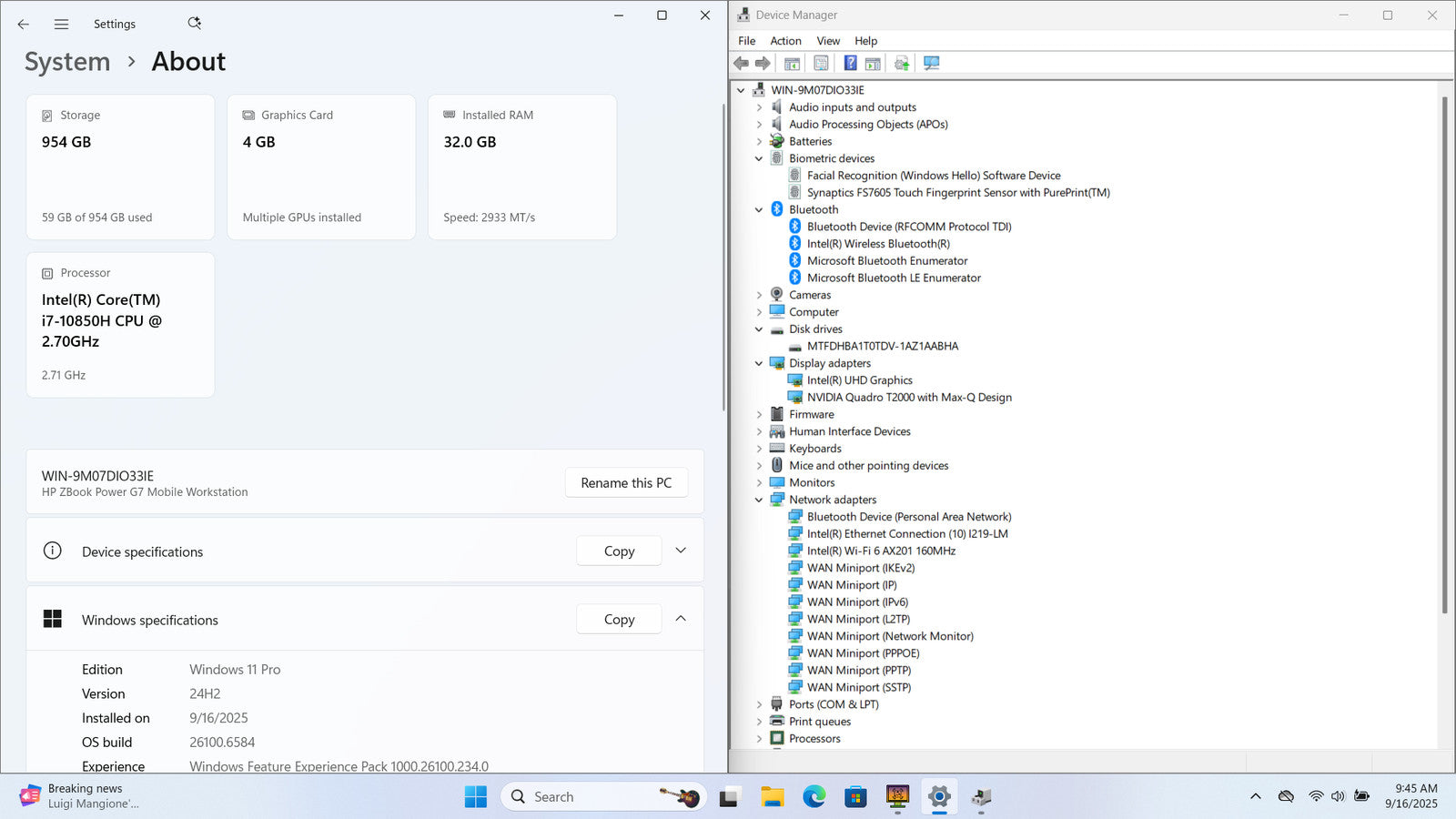 HP ZBook Power G7 15" FHD I7-10850H 1TB SSD 32GB W11P Quadro T2000 Backlit