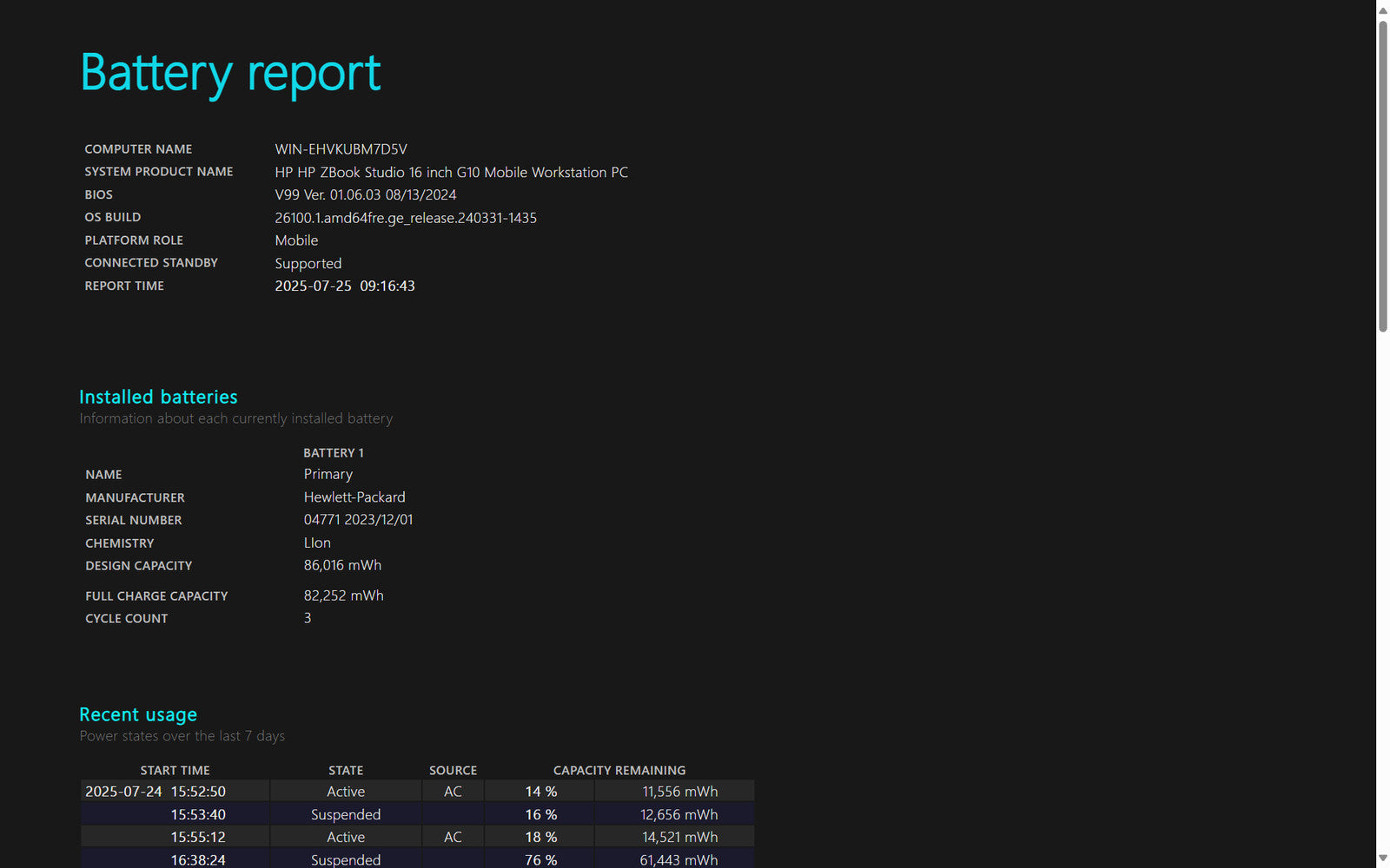 Battery Condition: 84,186/86,016 mWh 97.87%