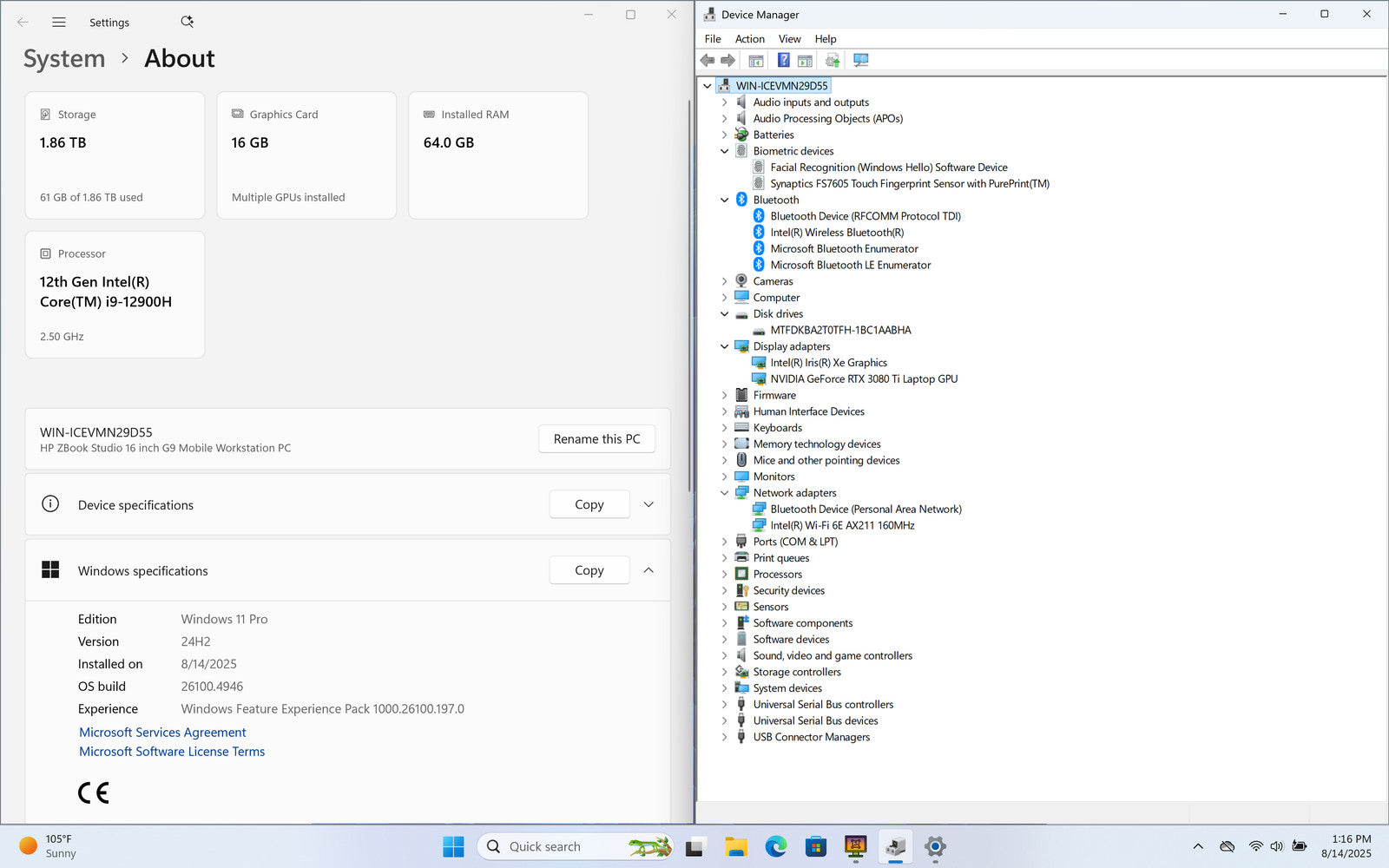 HP ZBook Studio G9 16" UHD+ 4K+ I9-12900H 2TB SSD 64GB W11P RTX 3080 Ti 120Hz