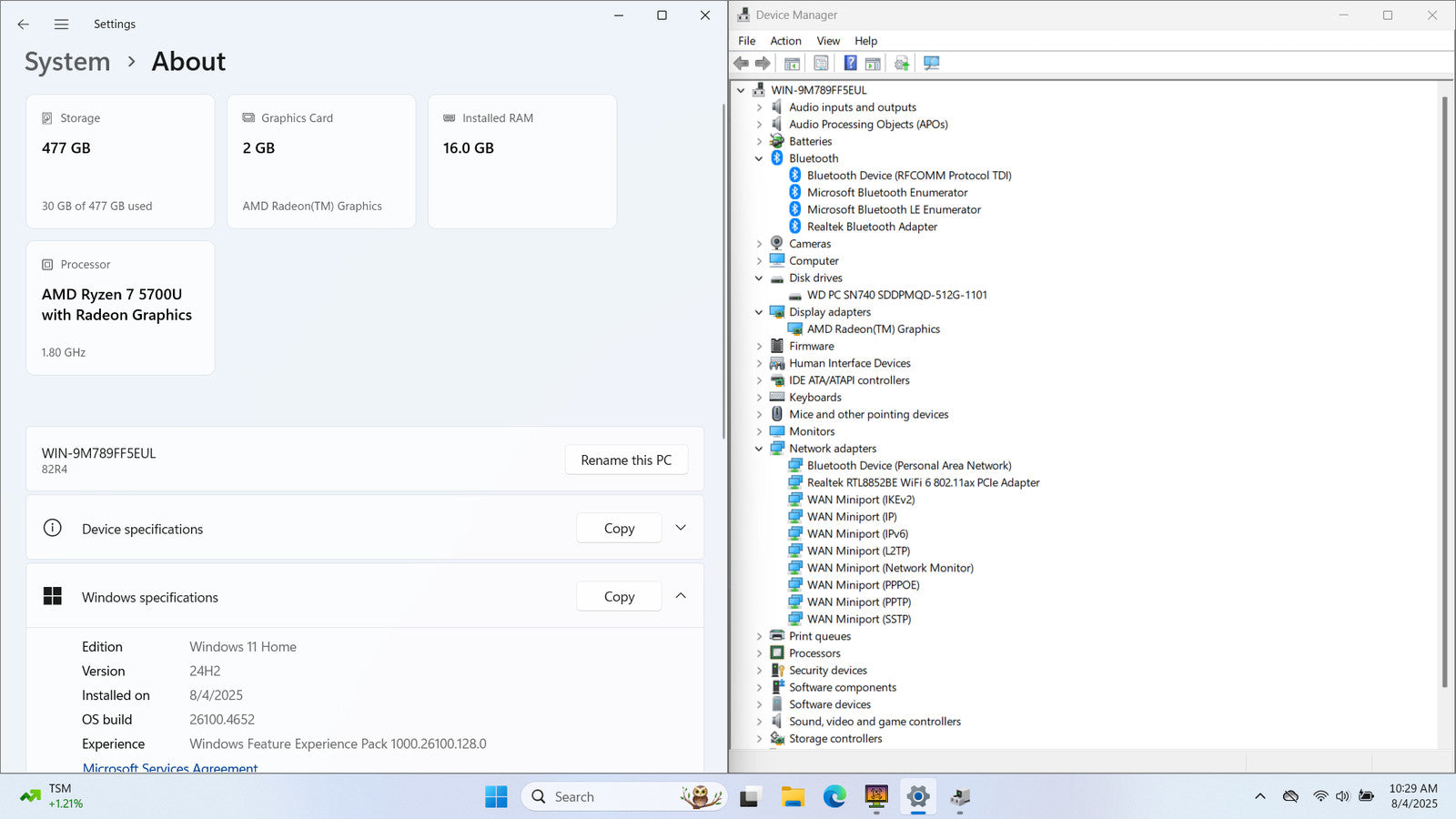 LENOVO IdeaPad 1 15ALC7 15" FHD Touch RYZEN 7 5700U 512GB SSD 16GB W11