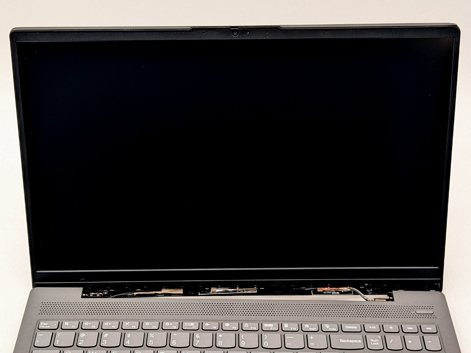 Cosmetic Defects: Interior: Display has visible scratches and/or keyboard imprinting. Hinge damaged, cover missing. Moderate wear on keyboard, touchpad, and palm rest, scuffed along edges of base. Exterior: Light wear and scratches on lid and bottom cover, scuffs and dents along edges of device. Missing bottom rubber feet.