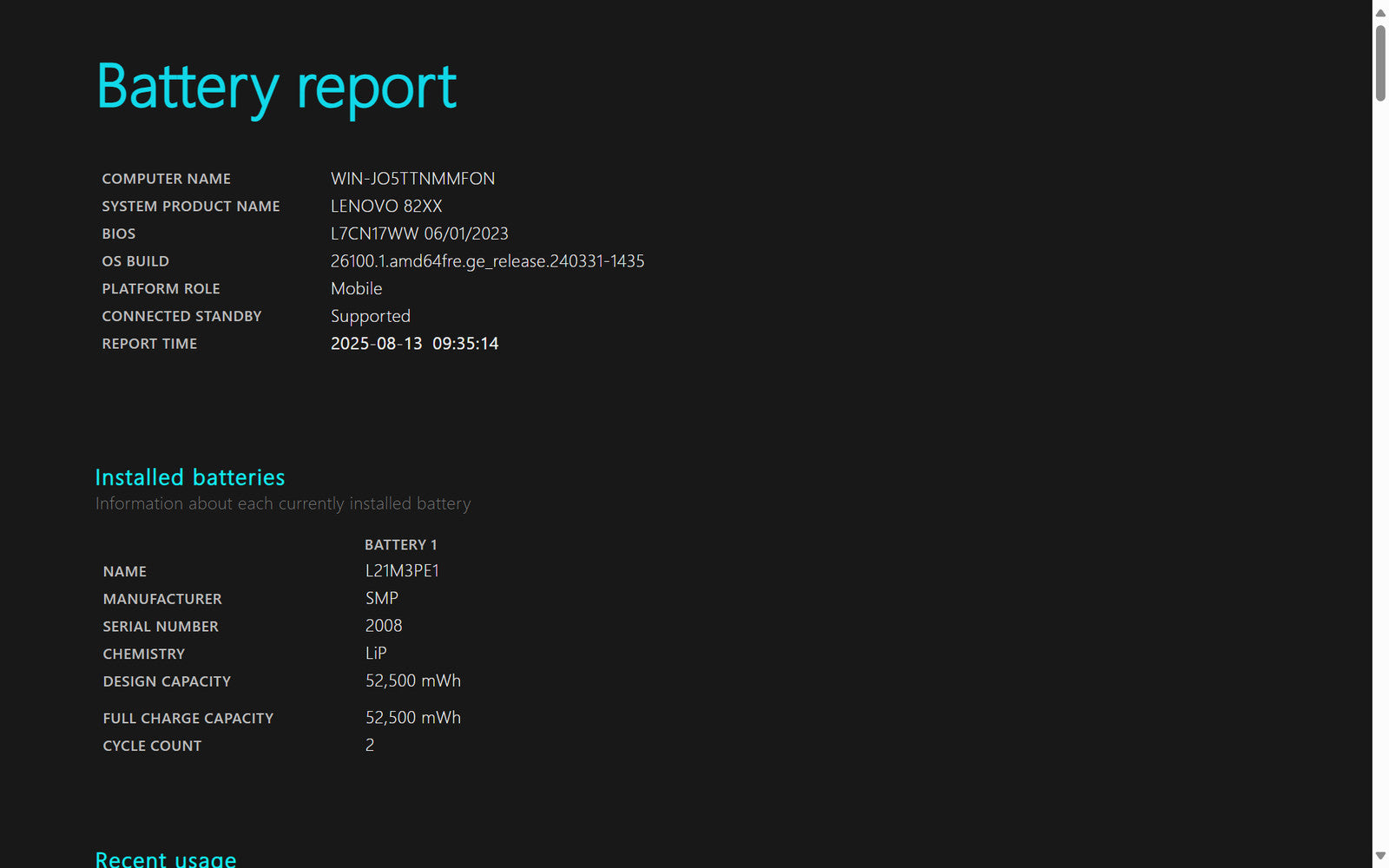Battery Condition: 52,500/52,500 mWh 100.00%
