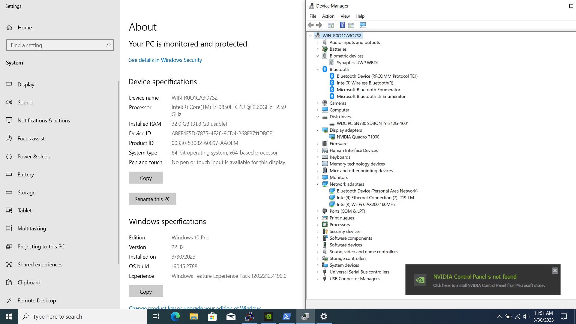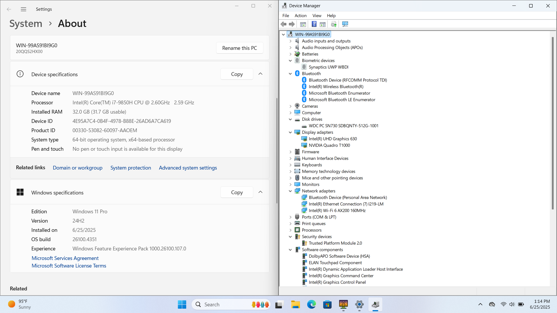 Lenovo P53 15.6 FHD I7-9850H 512GB SSD 32GB W11P Quadro T1000 Webcam FP Reader