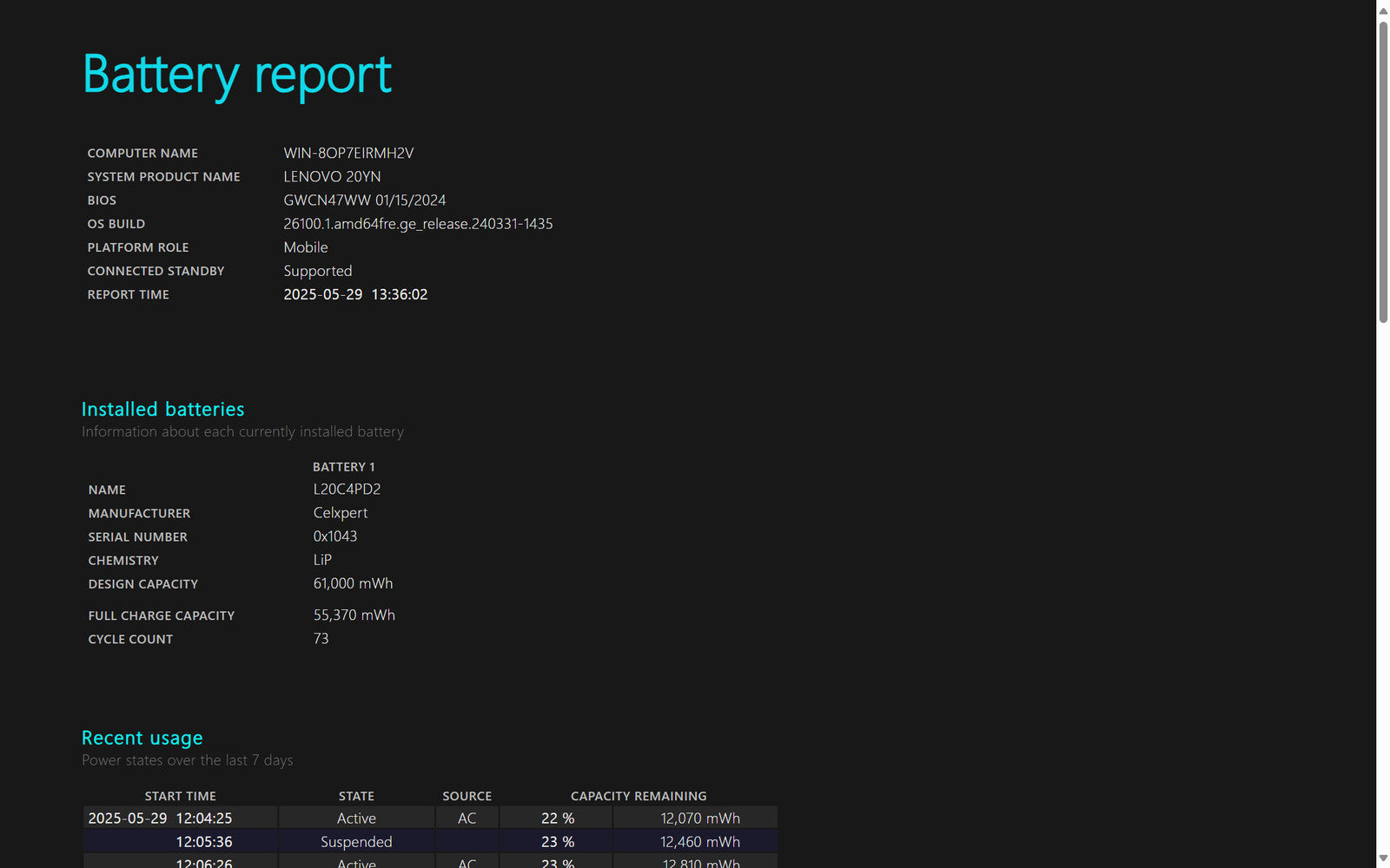 Battery Condition: 55,370/61,000 mWh 90.77%
