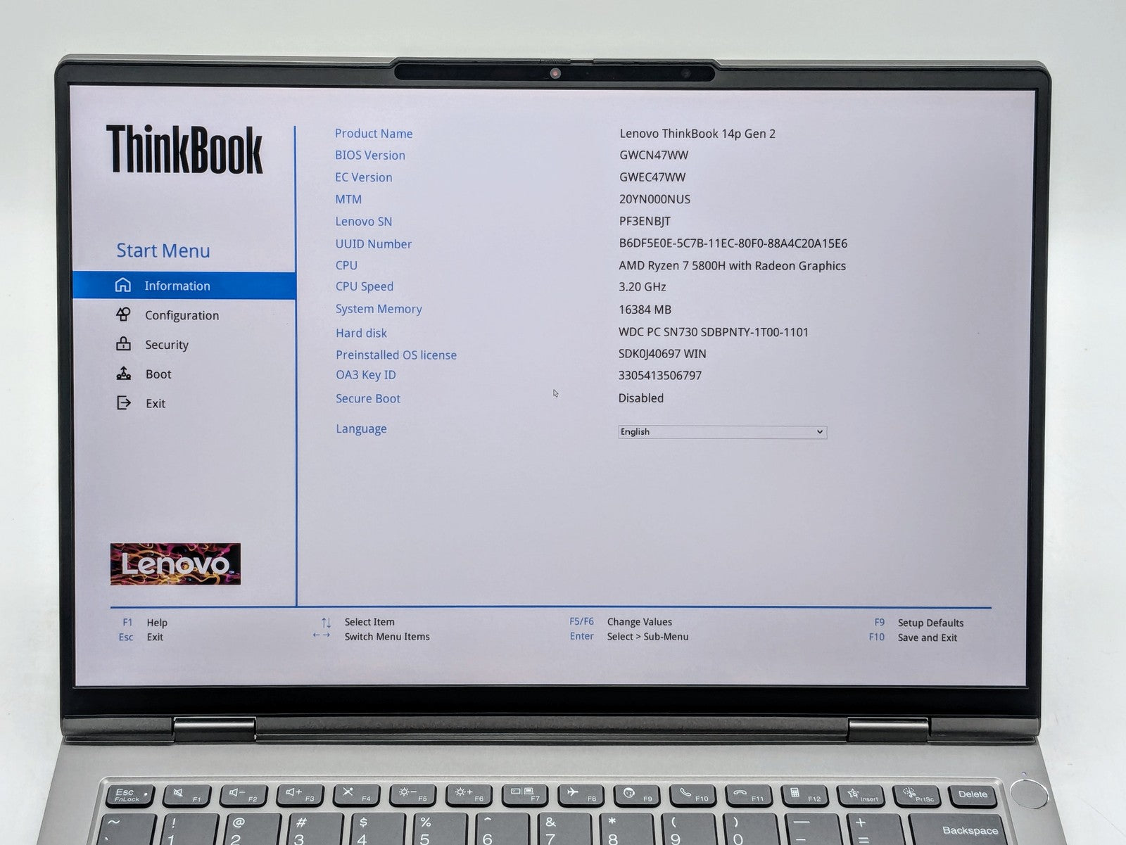 LENOVO ThinkBook 14p G2 ACH 14" 2240 x 1400 RYZEN 7 5800H 1TB SSD 16GB W11P