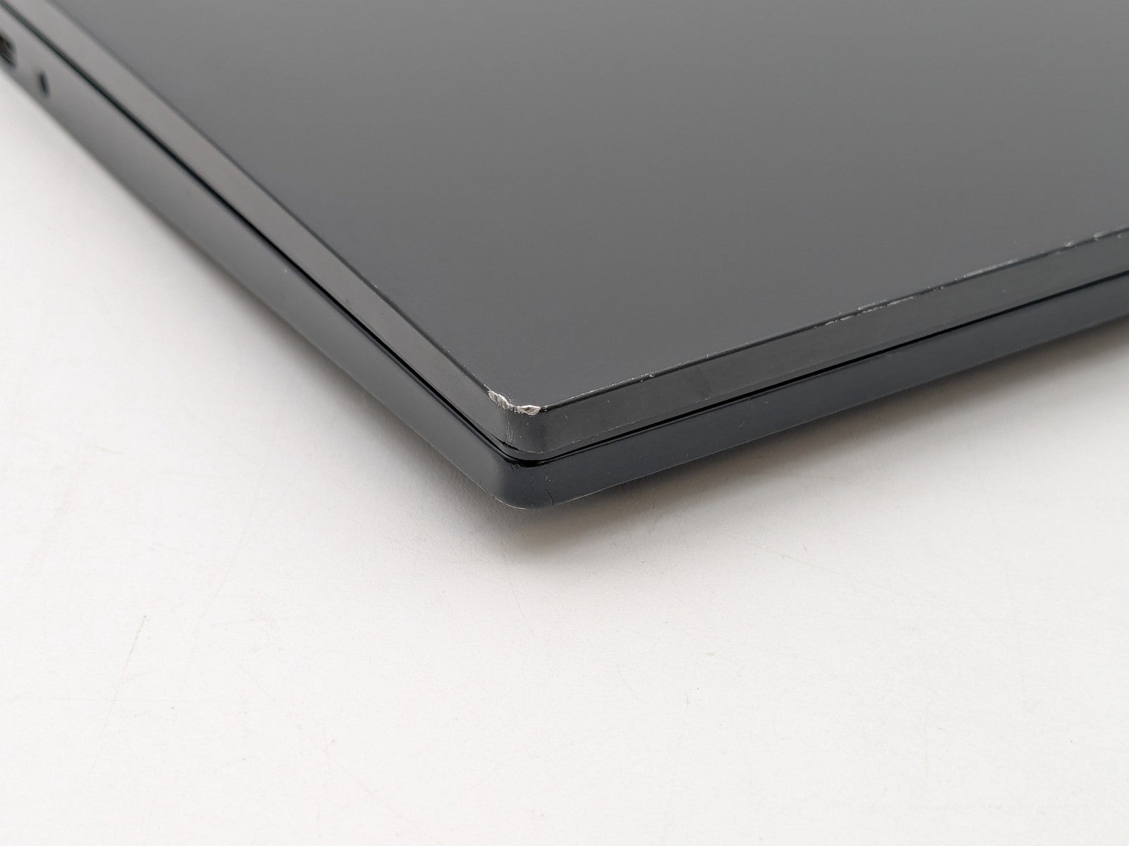 Cosmetic Defects: Interior: Cracks, missing plastic on palmrest. Scuffs and wear on touchpad, keys, and palm rest. Heavy imprinting above keyboard. Display has visible scratches and keyboard imprinting. Cracks and missing plastic on display bezel. Heavy scratching and marks on bezel. Exterior: Dents, scratches, and chipped paint on top, bottom, and sides of unit. Chip and marks covering exterior of unit. Grates on bottom pushed in. Missing plastic in bottom corner. Missing rubber feet on bottom of unit.