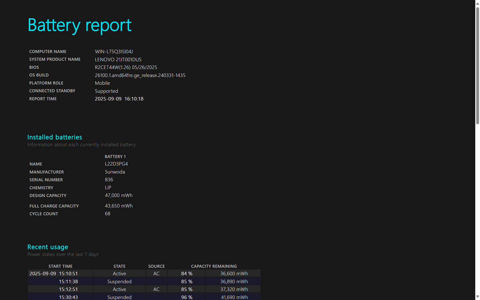 Battery Condition: 43,650/47,000 mWh 92.87%