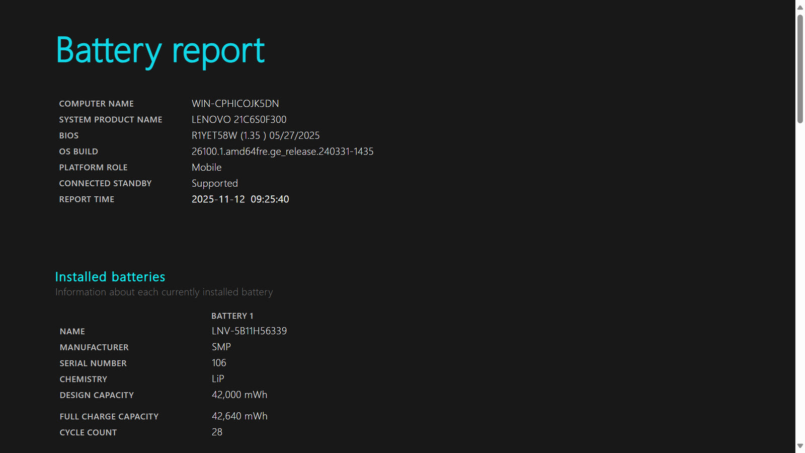 Battery Condition: 42,000/42,640 mWh 98.50%