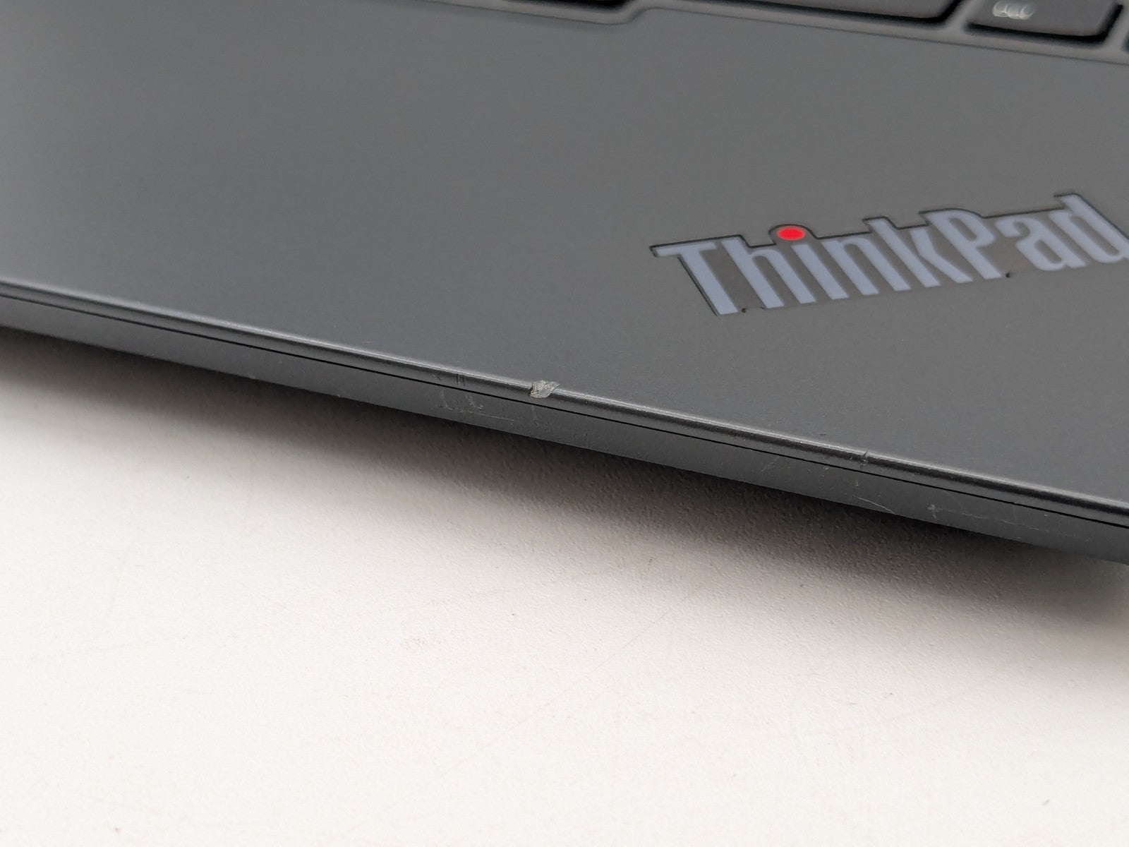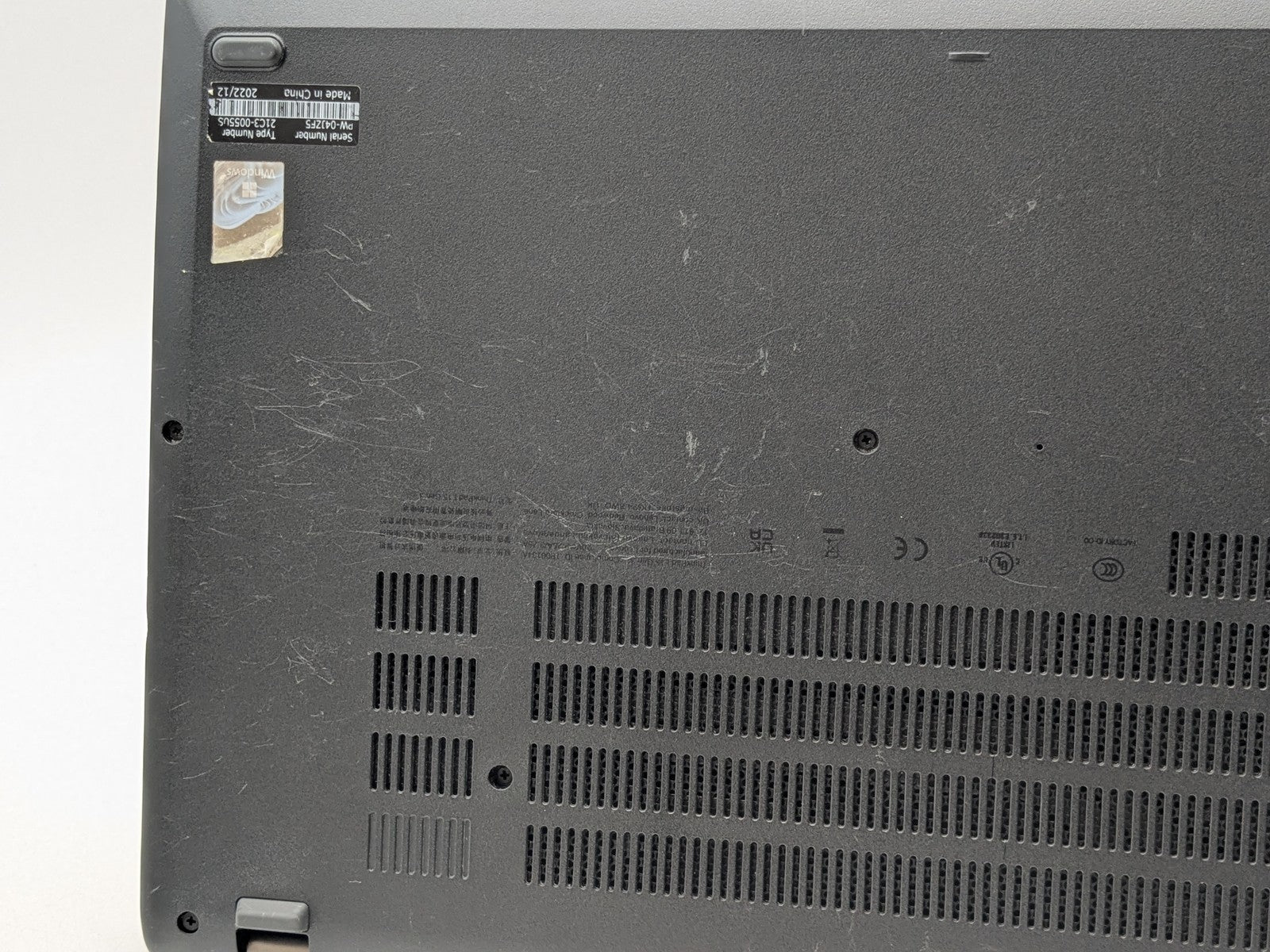 Cosmetic Defects: Interior: Display has visible scratches and keyboard imprinting. Visible wear on keyboard, touchpad, palm rest, and around keyboard. Scuffed along edges of base. Exterior: Visible wear and scratches on lid and bottom cover. Scuffed and dinged along edges of device.