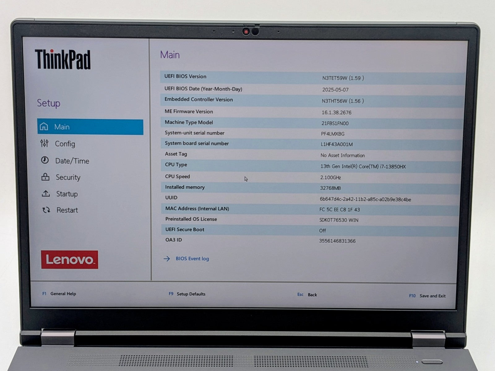 Lenovo ThinkPad P16 Gen 2 16" WQXGA I7-13850HX 1TB SSD 32GB W11P RTX A1000 165Hz