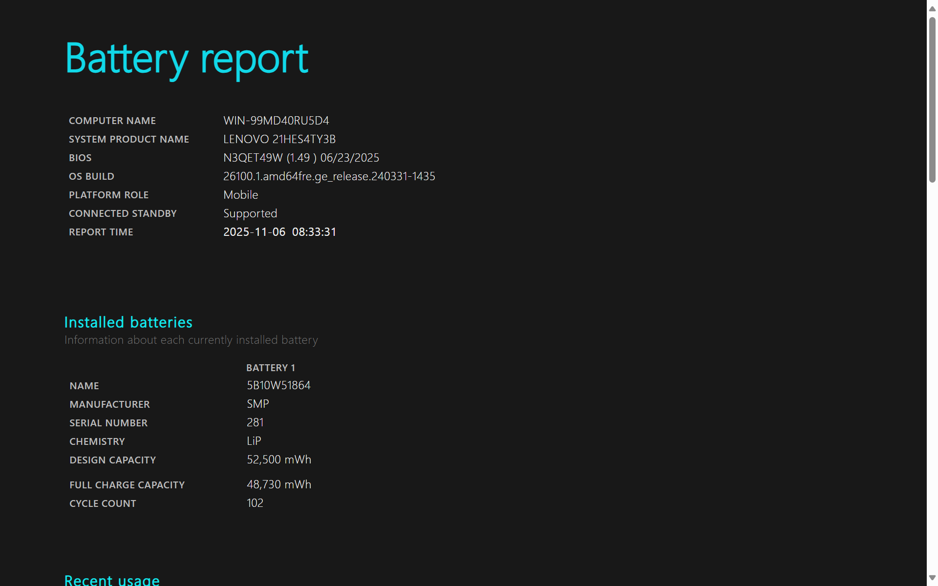 Battery Condition: 48,730/52,500 mWh 92.82%
