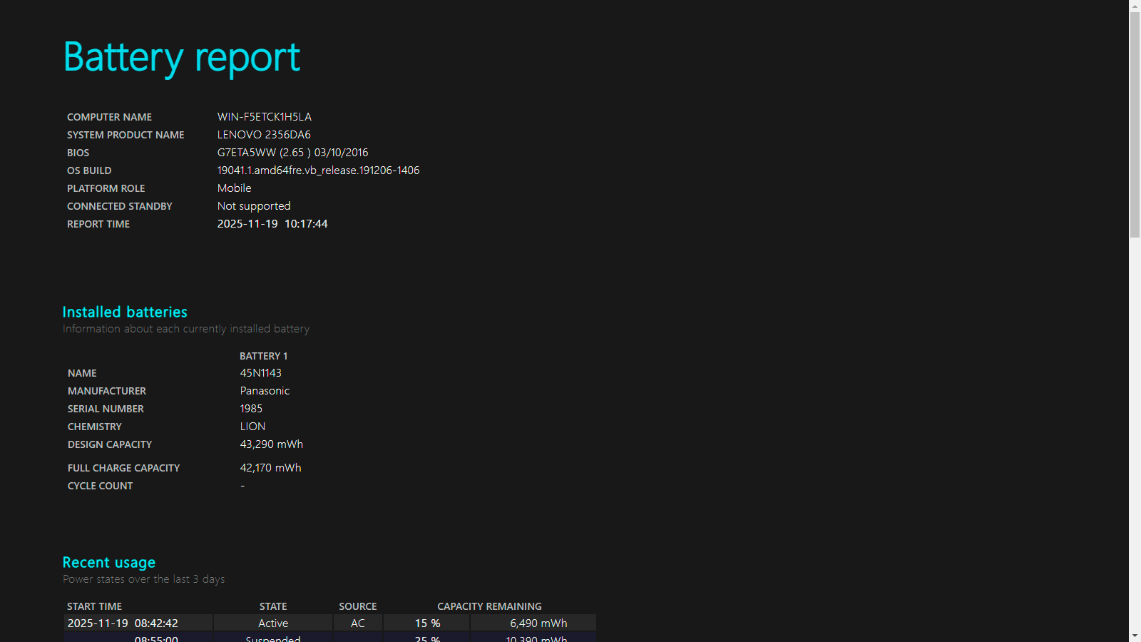 Battery Condition: 42,170/43,290 mWh 97.41%