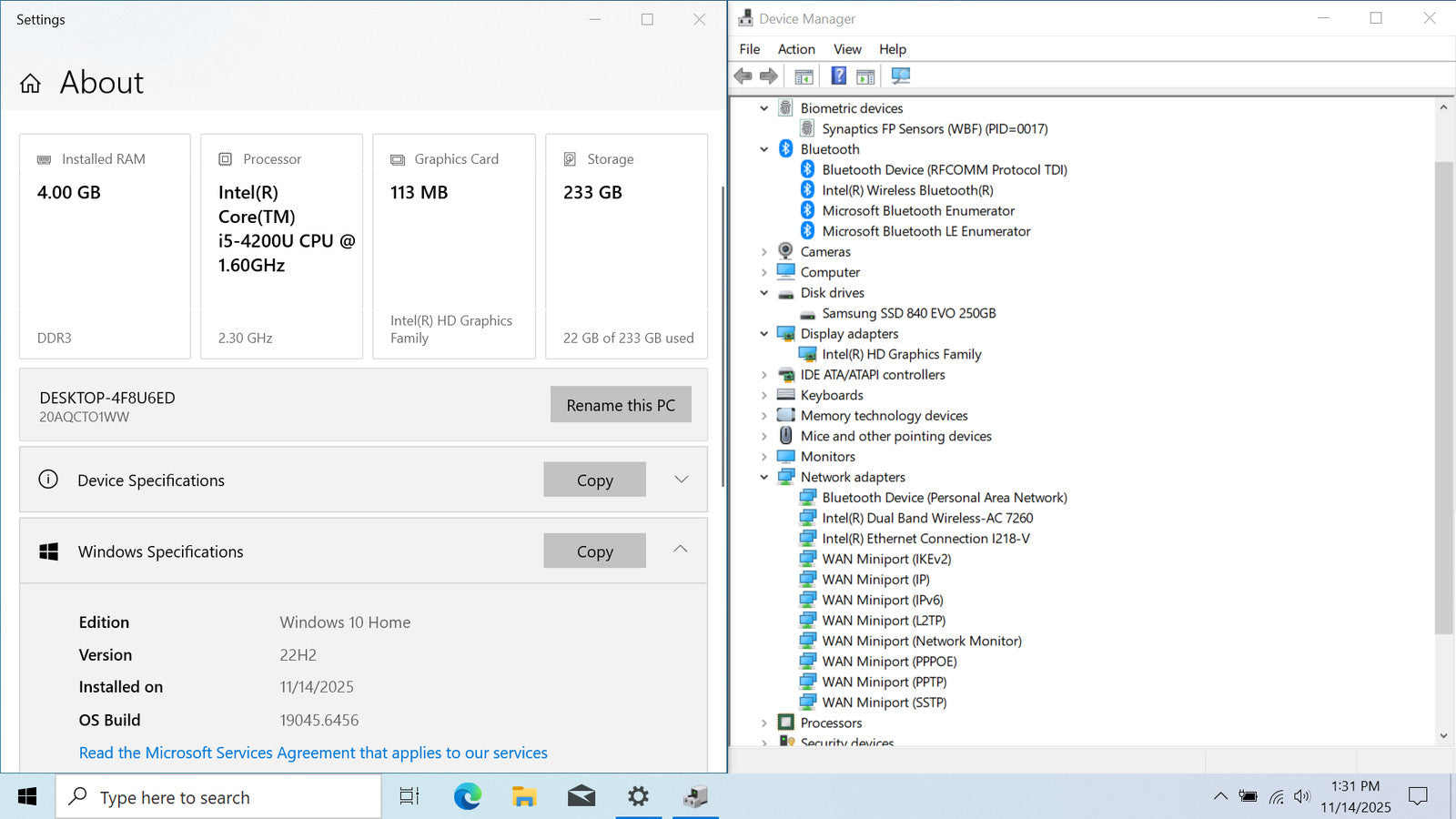 Lenovo ThinkPad T440s 14" FHD I5-4200U 256GB 4GB W10 Webcam Backlit FP Reader