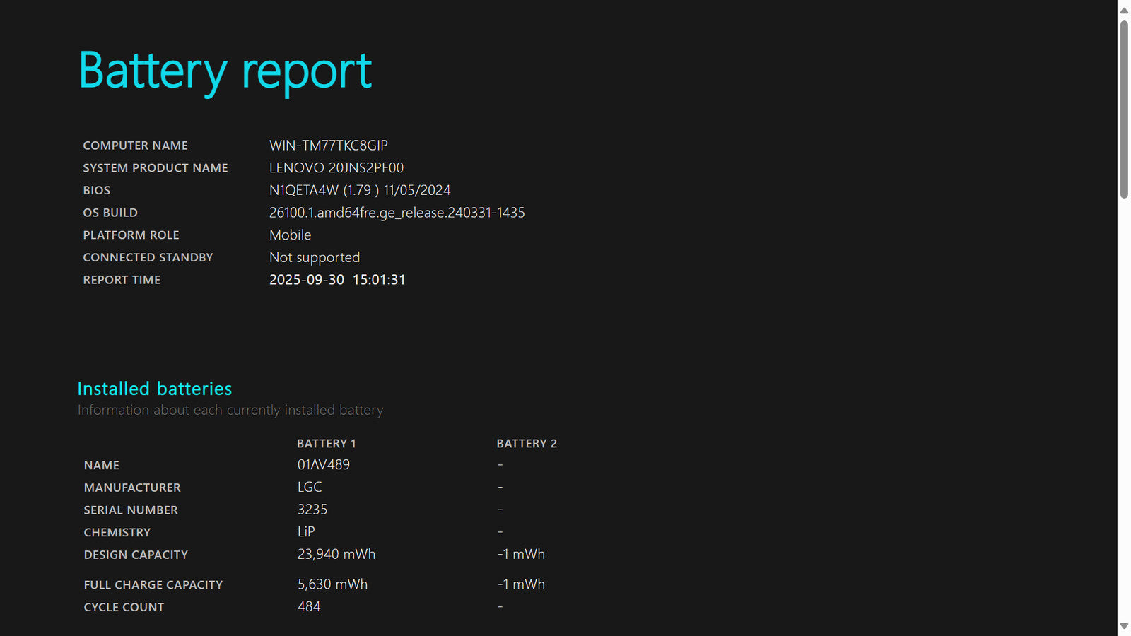 Battery Condition: Battery 1: 19,370/23,940mWh 80.91% | Battery 2: 20,230/23,940mWh 84.50%
