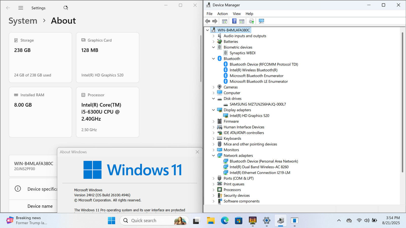 LENOVO ThinkPad T470 14" FHD I5-6300U 256GB SSD 8GB W11P Webcam Backlit FPR