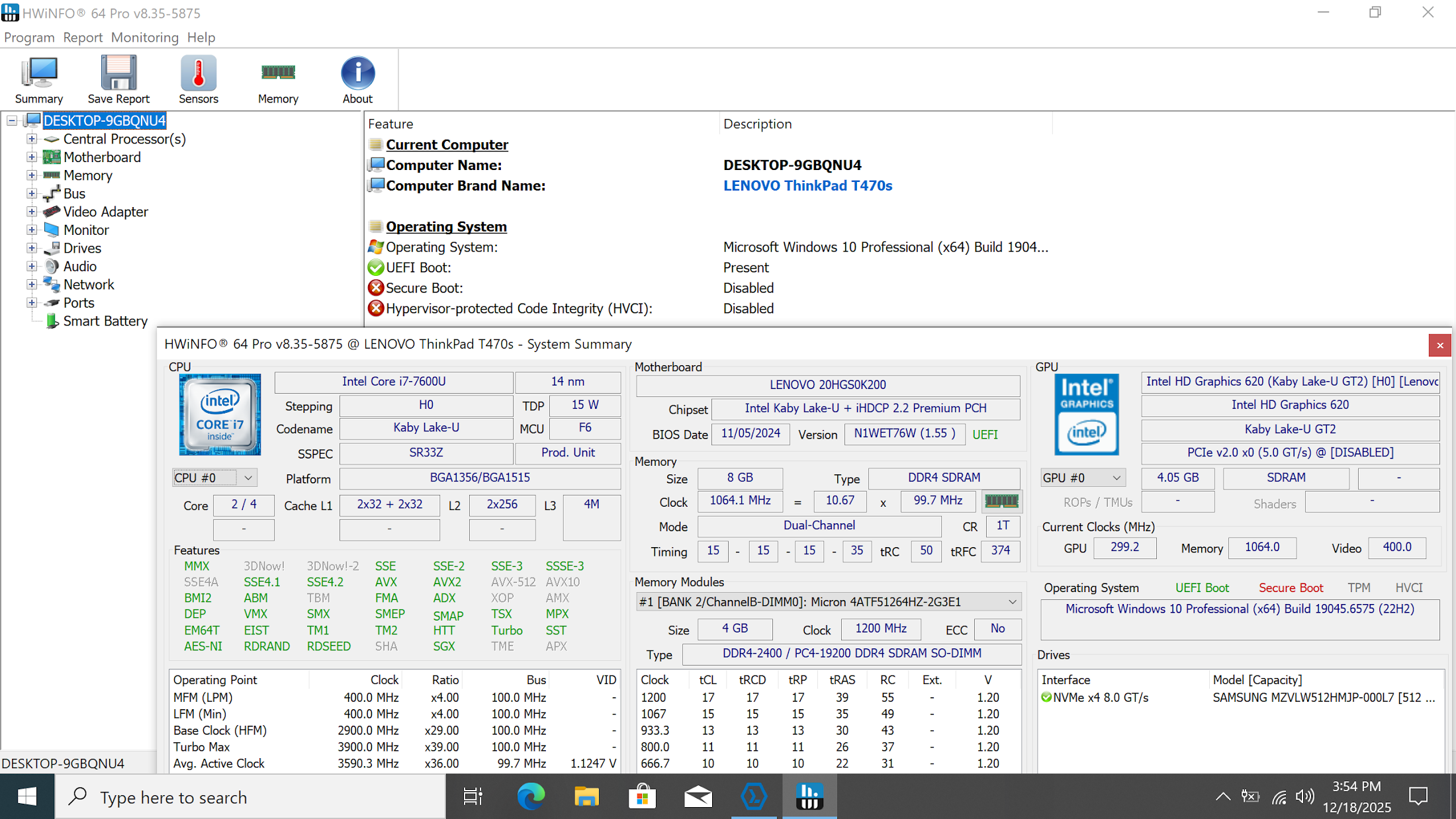 Lenovo ThinkPad T470s 14" QHD I7-7600U 512GB SSD 8GB W10P Webcam Backlit *READ*
