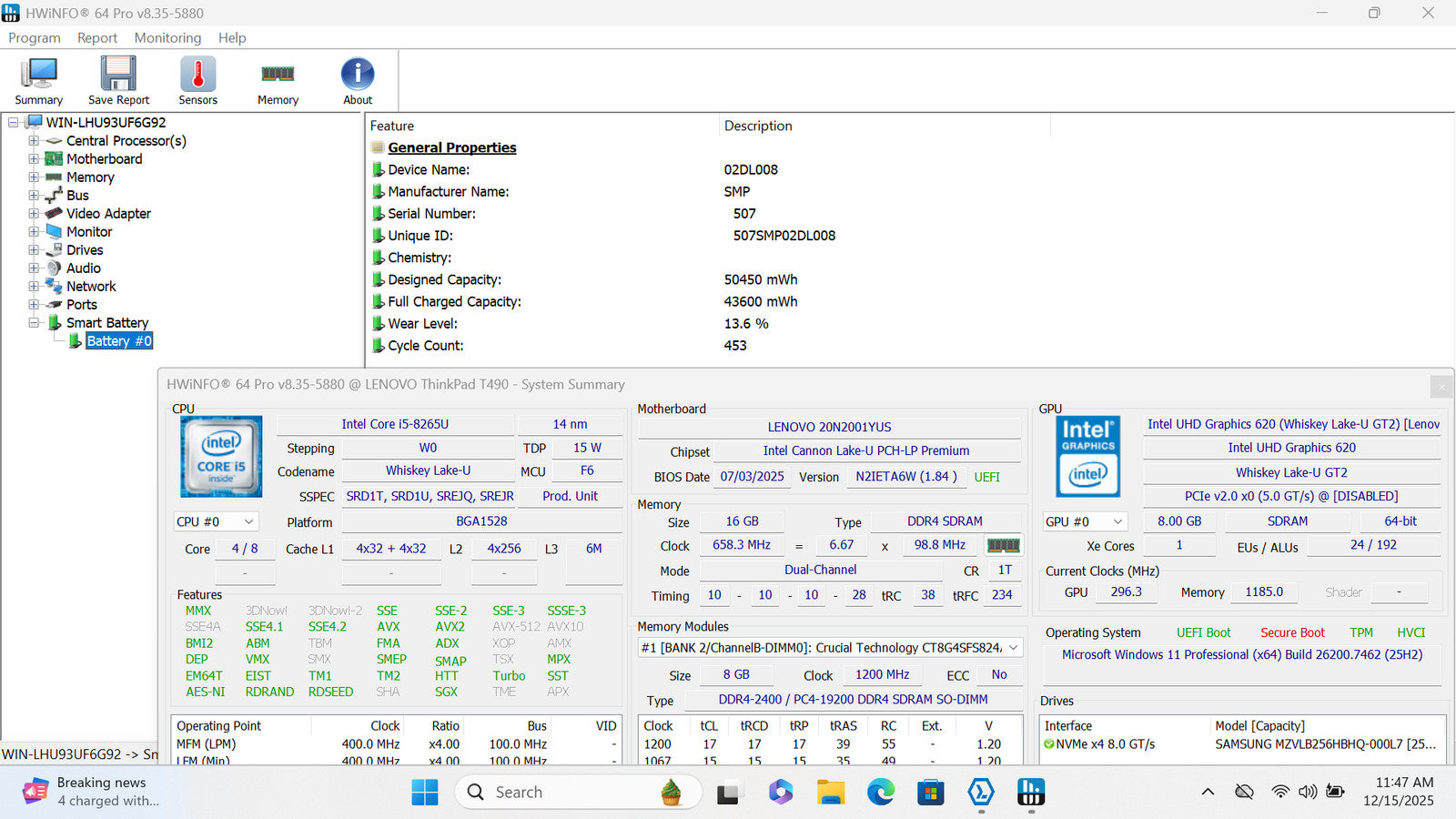 Battery Condition: 43,600/50,450 mWh 86.42%