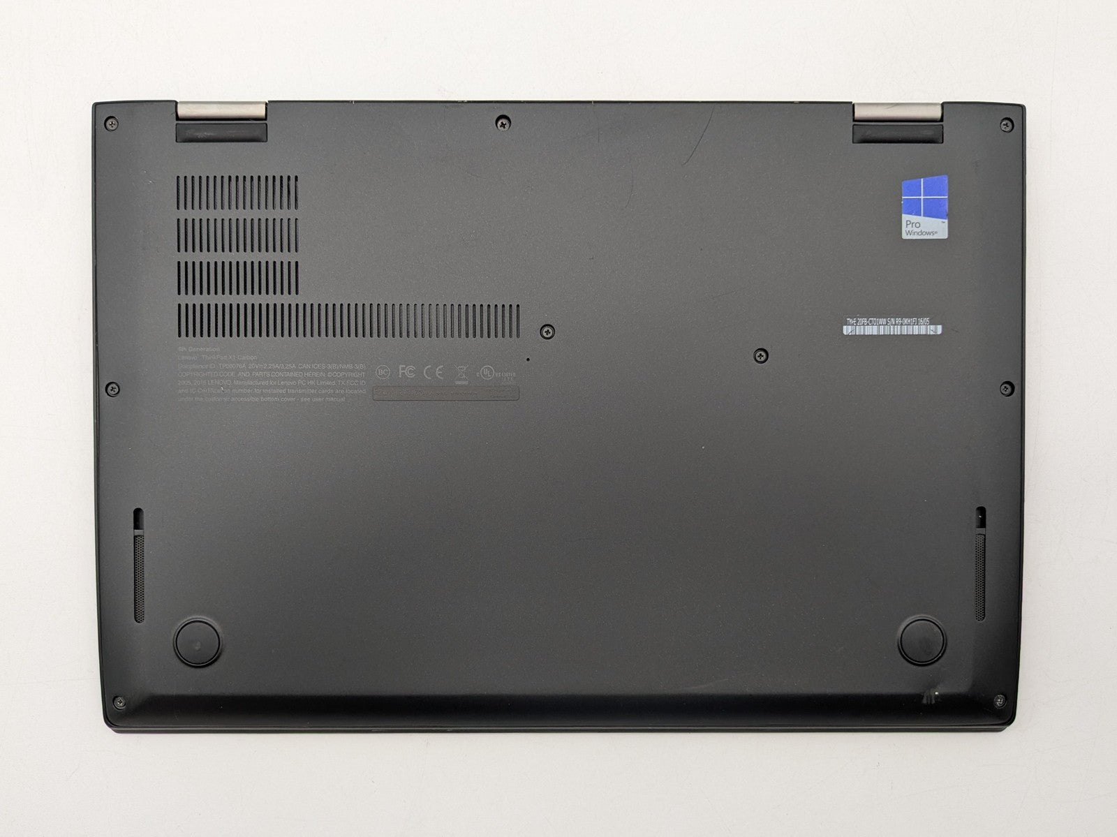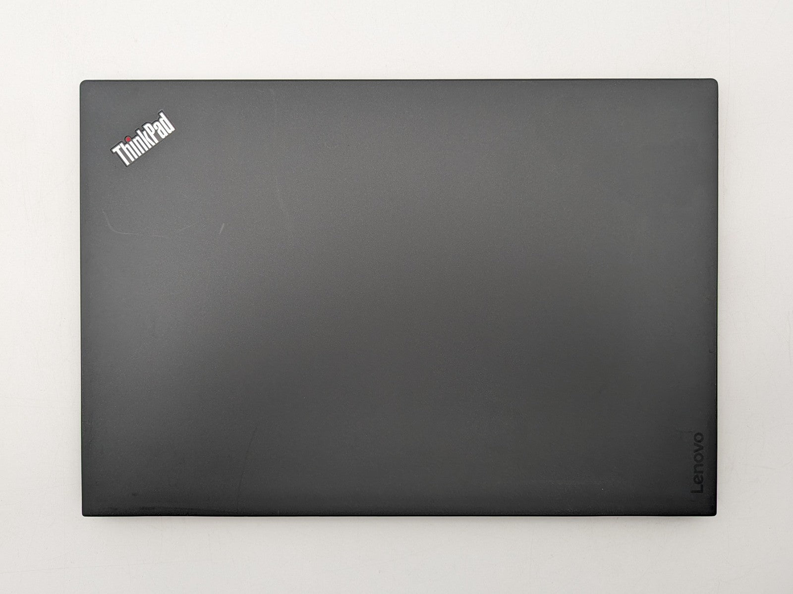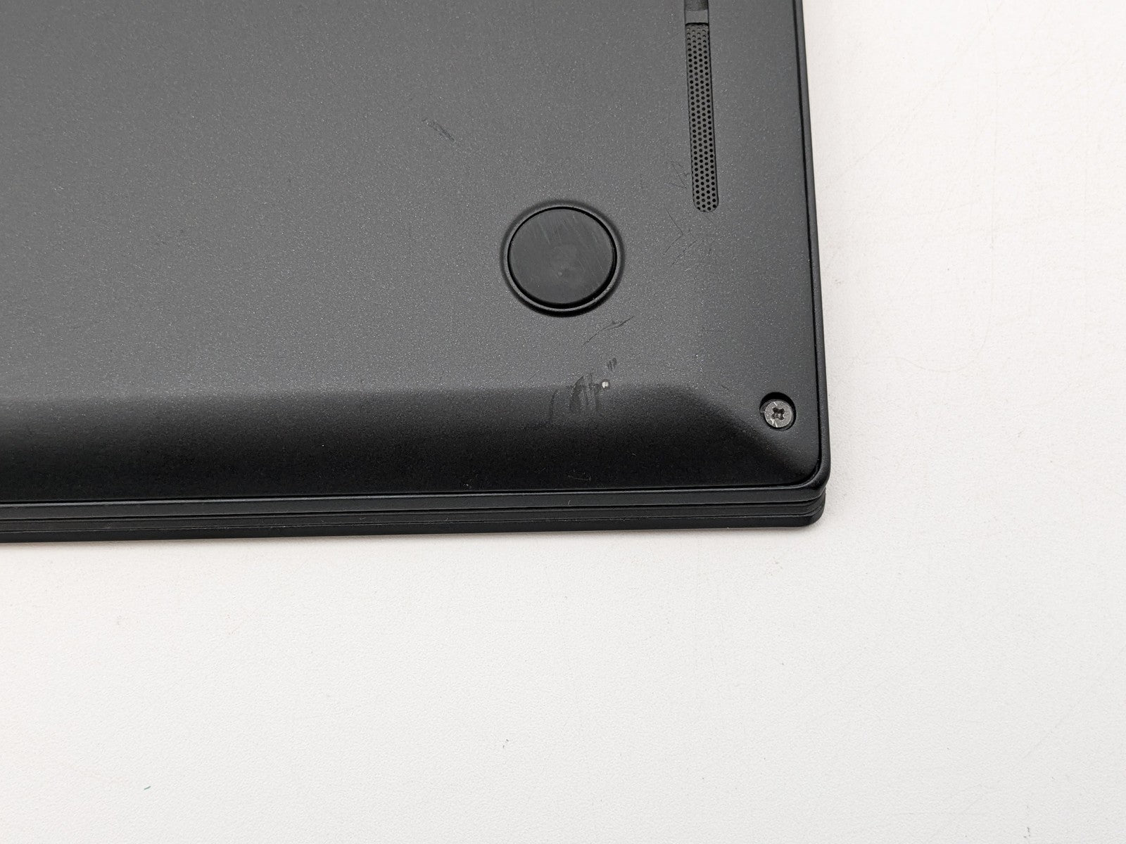 Cosmetic Defects: Interior: Display has visible keyboard imprinting. Glossy wear on keycaps and touchpad buttons. Palm rest has minor scuffs and screw bubble. Chipped coating on hinge cover. Exterior: Top cover has heavy wear and scuffs. Bottom cover has dents, scratches, scuffs, and worn feet.
