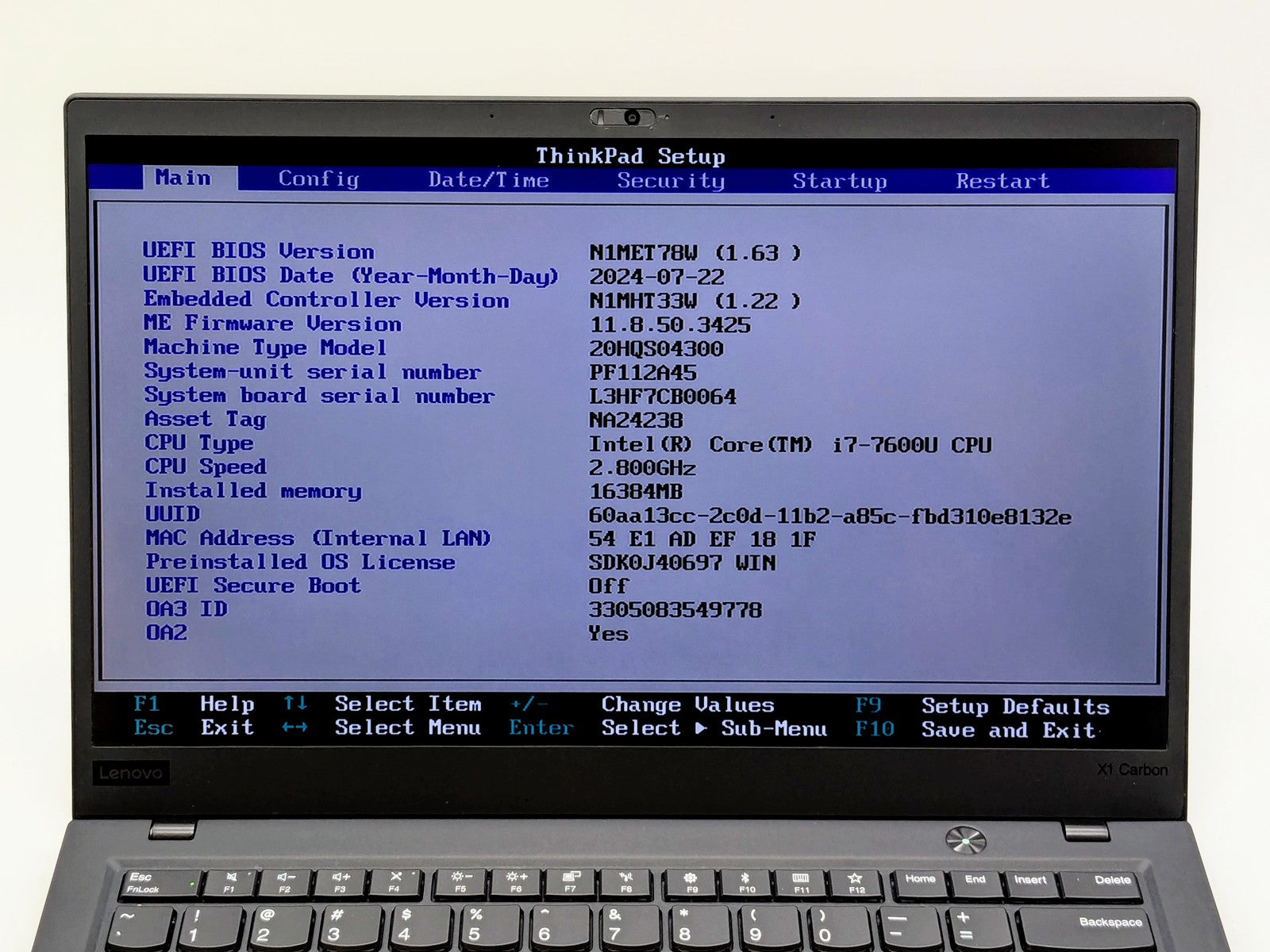 Lenovo ThinkPad X1 Carbon Gen 5 14" FHD I7-7600U 512GB SSD 16GB W10P *READ*