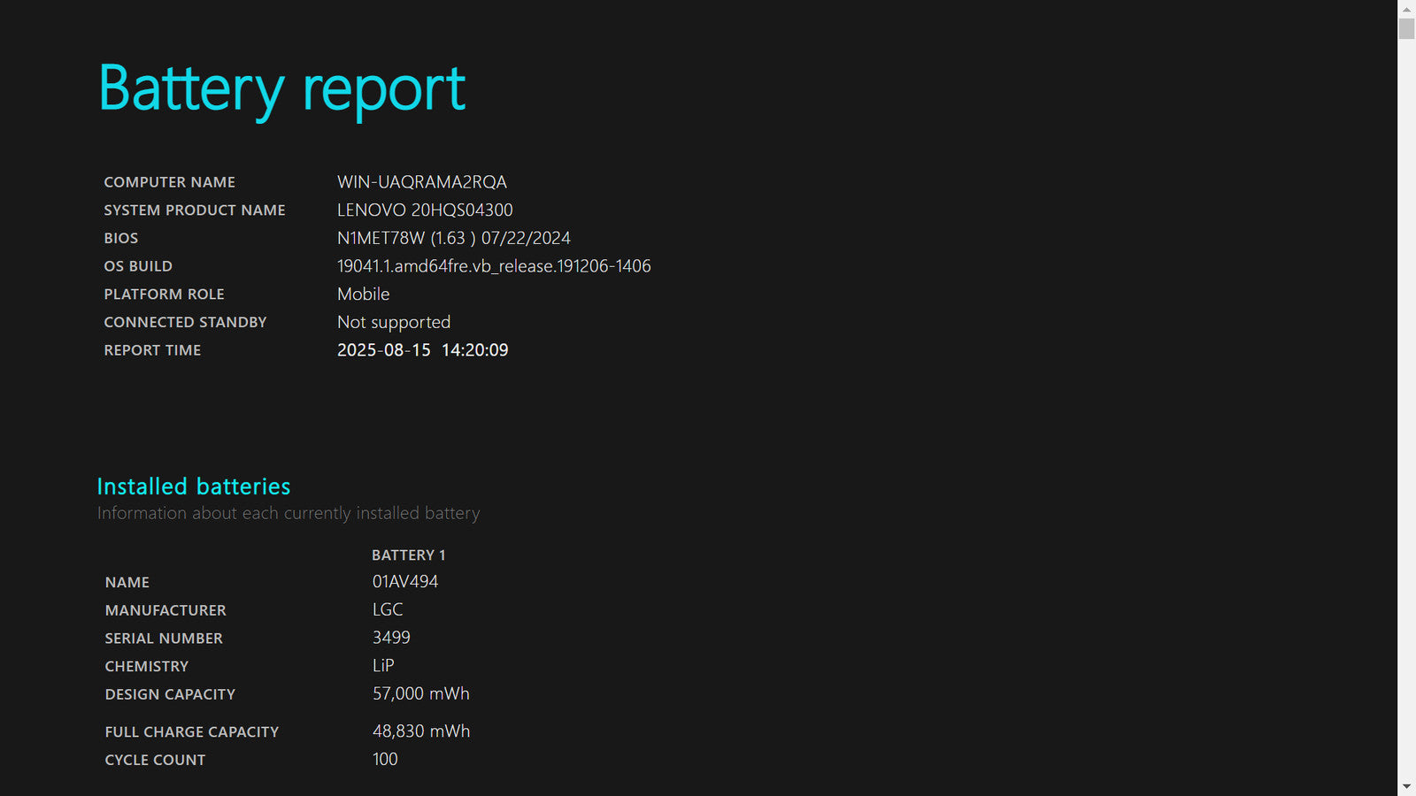 Battery Condition: 48,840/57,000 mWh 85.68%