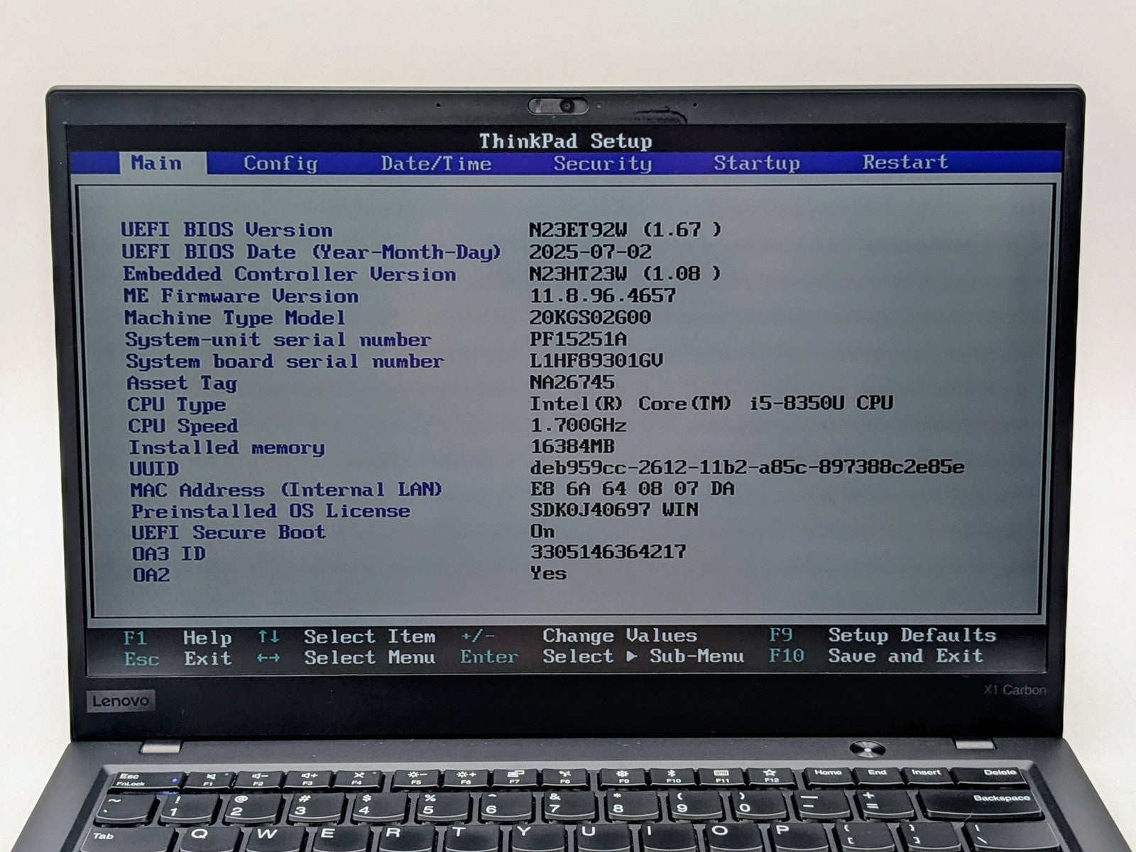 Lenovo ThinkPad X1 Carbon Gen 6 14" FHD I5-8350U 256GB 16GB W11 Pro Backlit FPR