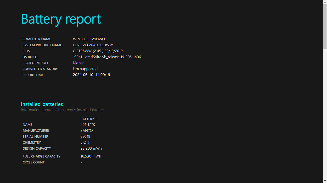 Battery Condition: 16,530/23,200 mWh 71.25%